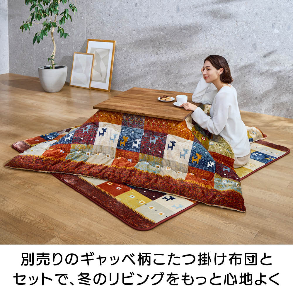 別売りのギャッベ柄こたつ掛け布団とセットで、冬のリビングをもっと心地よく