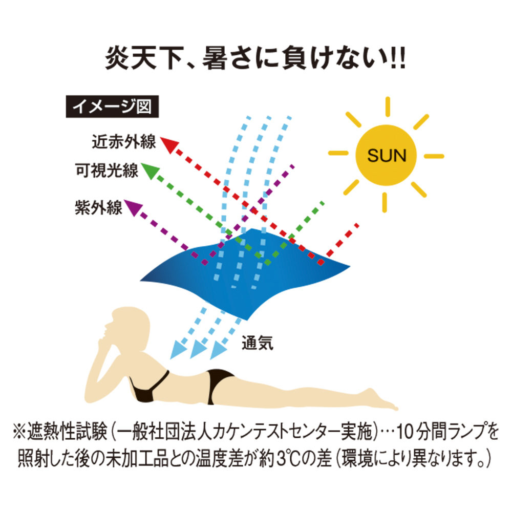 (*)遮熱性試験(一般社団法人カケンテストセンター実施)…10分間ランプを照射した後の未加工品との温度差が約3℃の差(環境により異なります。)
