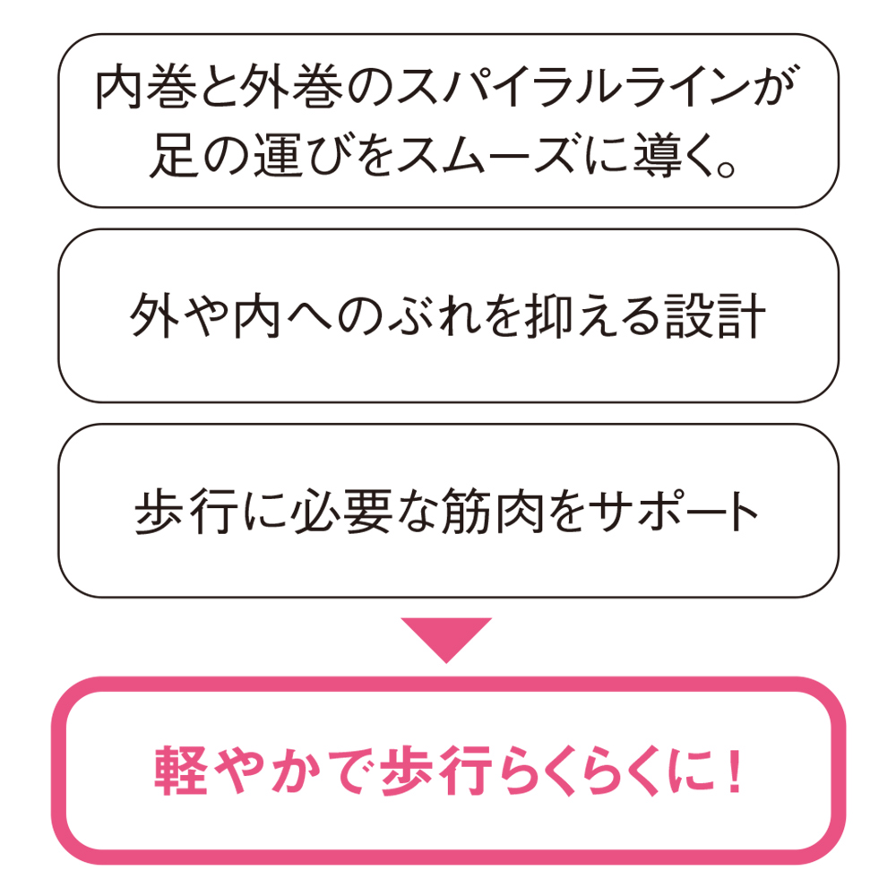 サポート仕様で骨盤・ヒップ~脚全体の筋肉と動きを支えて、足が自然と前に出しやすくなる感覚をぜひ体感して。