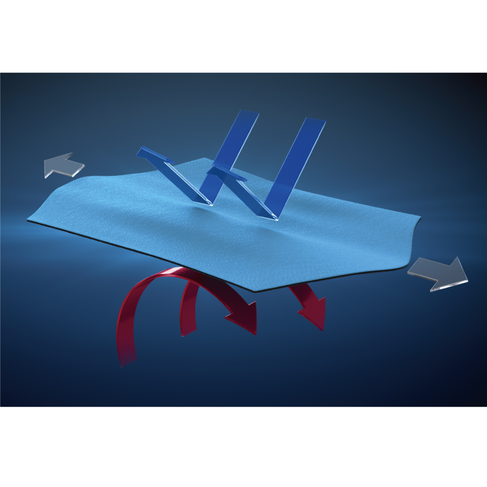 素材内部に防風層を設けた、強風も冷気も通しにくいミズノの機能素材「テックシールド」を採用。やわらかな肌触りで伸縮性もあり、アクティブシーンにもオススメです。