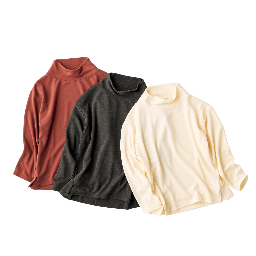 一枚で十分に暖かく、着心地やわらかな人気のブレスサーモカットソーは、旅のワードローブにぴったり。暖かさを高めて首元を適度にカバーするオフタートルネックで、コートやジャケットとの重ね着にももちろん活躍します。自宅でイージーケアできるのも高ポイント。