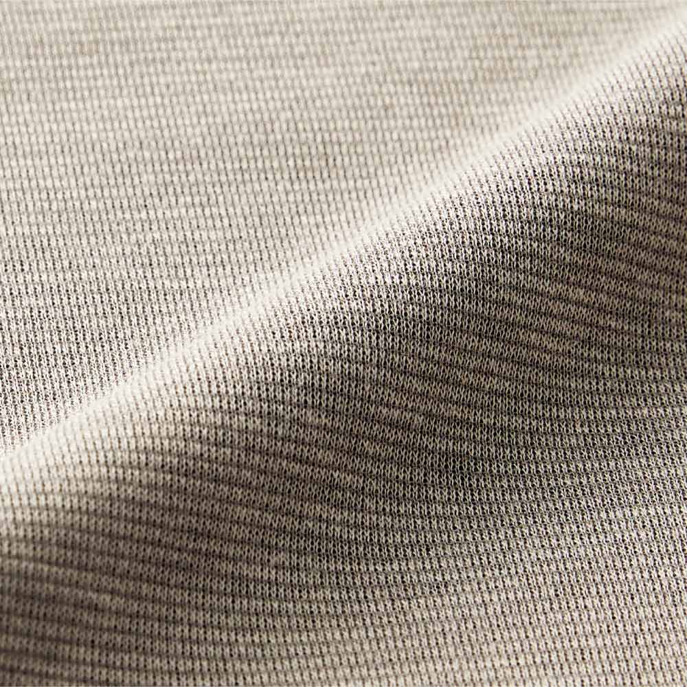 上からローズウッド チャコール杢 ブリスティンホワイト 内側の肌にあたる面に「ブレスサーモ」糸を使用。体から出る水分を吸湿して発熱し、しっかり温めます。