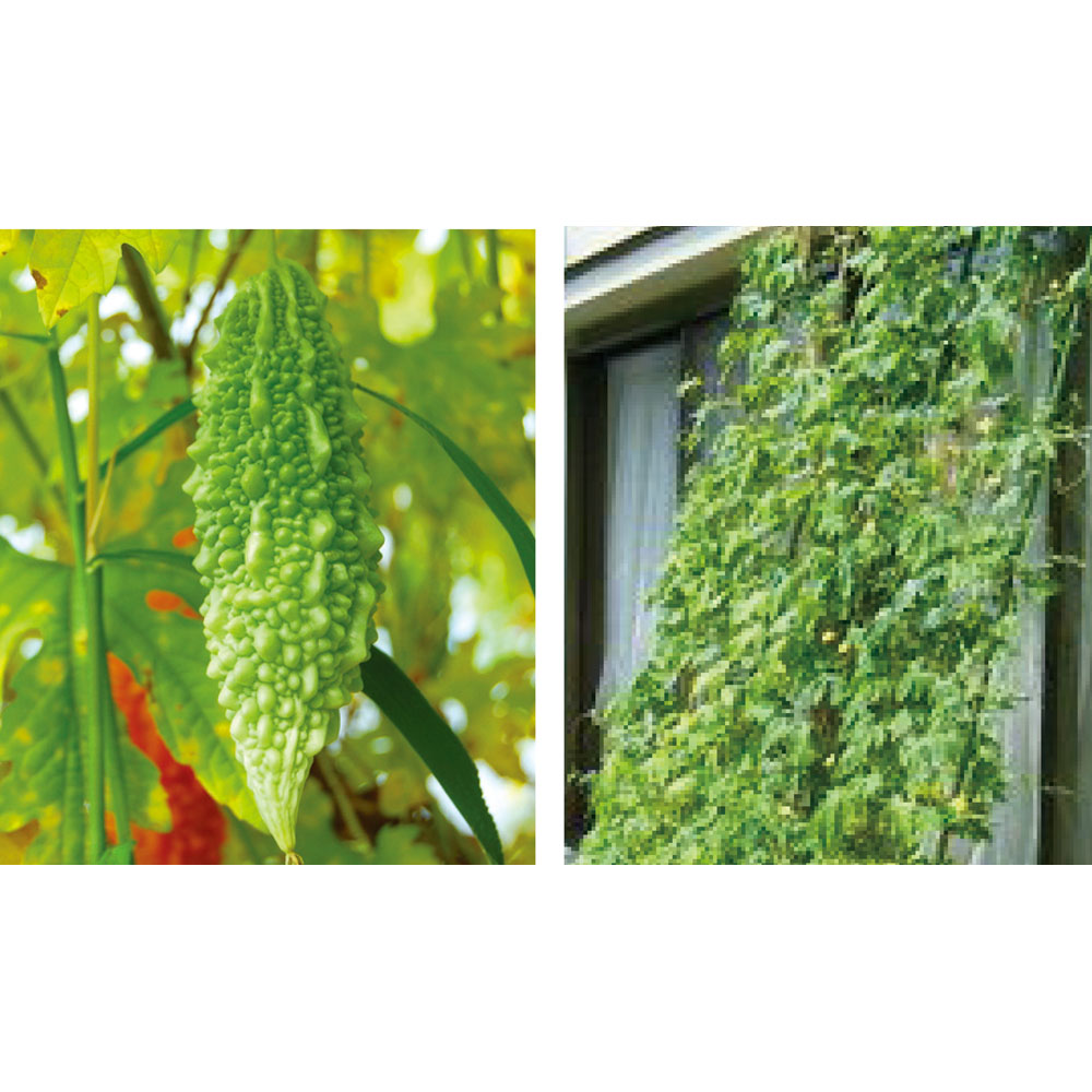 ゴーヤやふうせんかずら、クレマチスや朝顔で人気のグリーンカーテン。窓辺をグリーンで飾り、日を遮り室内の温度の上昇を防いで冷房効率もよくなる、と人気のエコ商品。