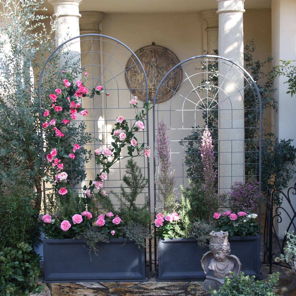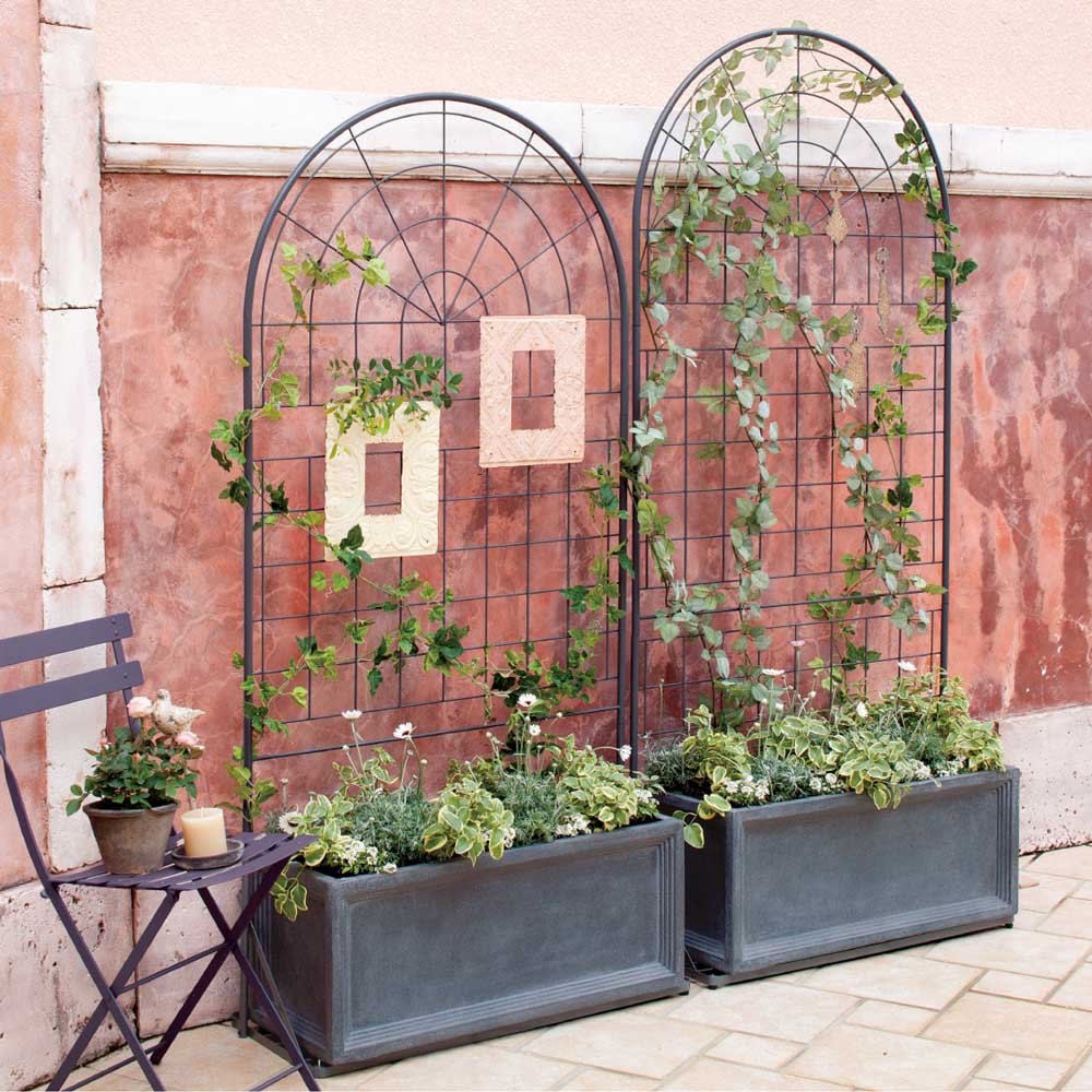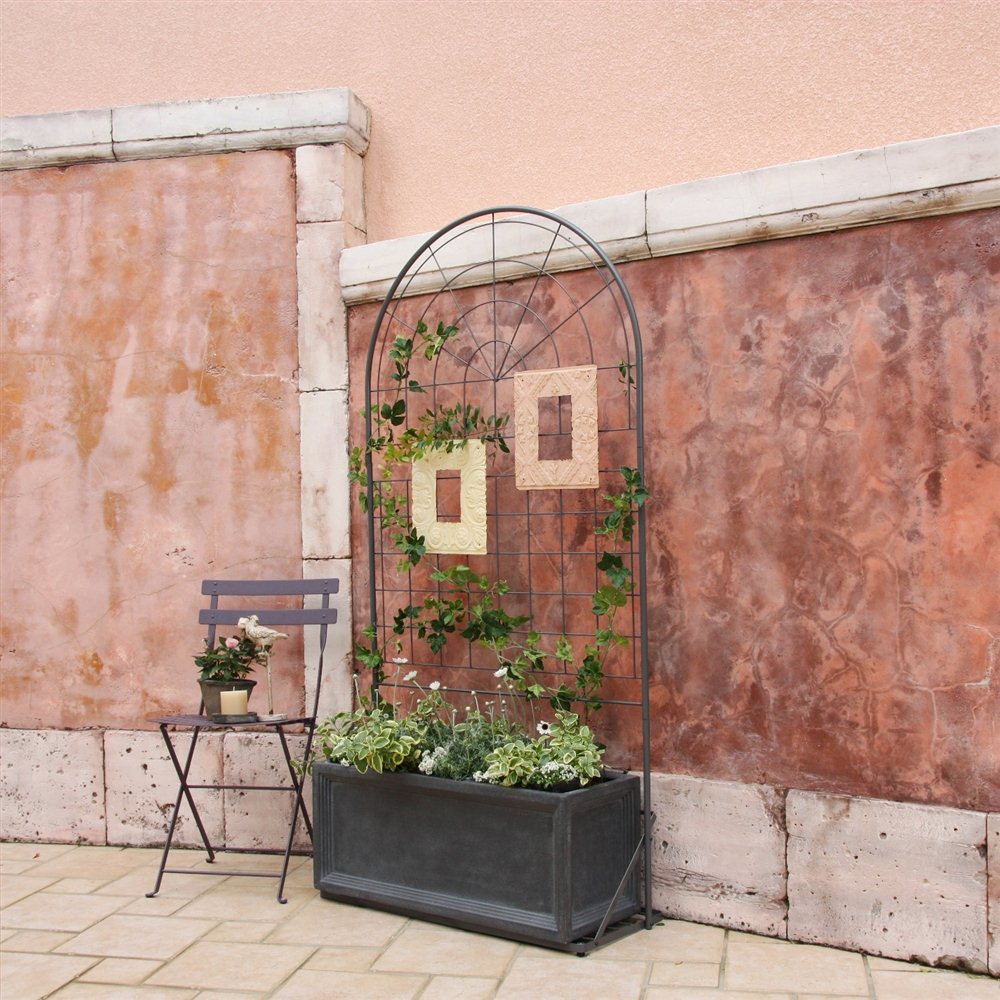 ・こんなプランター台付きトレリスがあれば、華やかで立体的な壁面づくりが楽しめます。・トップのラウンドデザインがお庭のアクセントに。