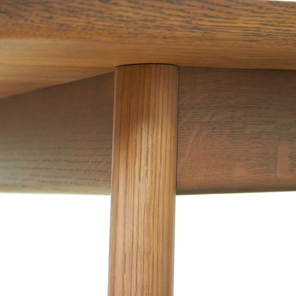 角部分もアール仕上げで、小さなお子さまのいるご家庭でも安心してお使いいただけます。素材には、自然のままの美しい木目を活かした温もりあふれるオーク天然木を使用しています。