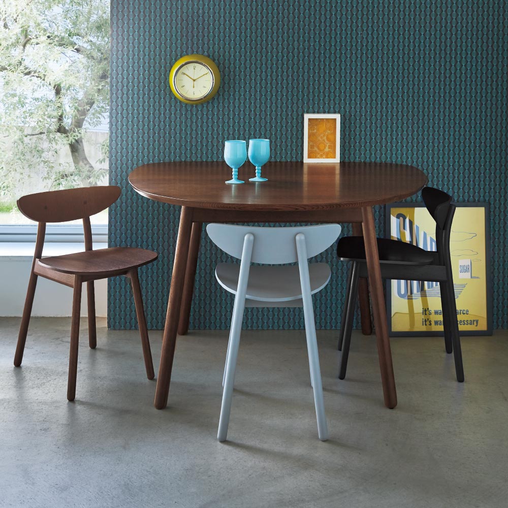 やさしい印象の曲線フォルムに、細身の脚が軽快な印象を生むダイニングチェアです。