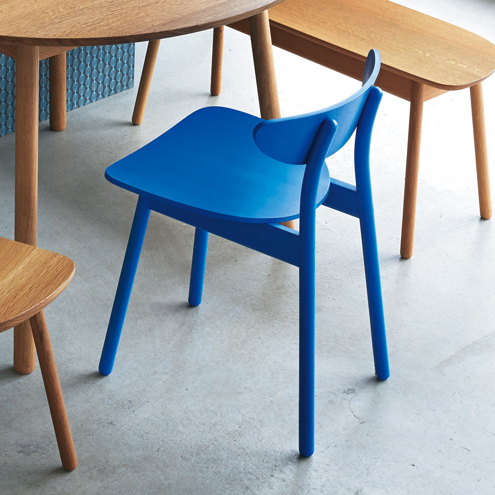 やさしい印象の曲線フォルムに、細身の脚が軽快な印象。
