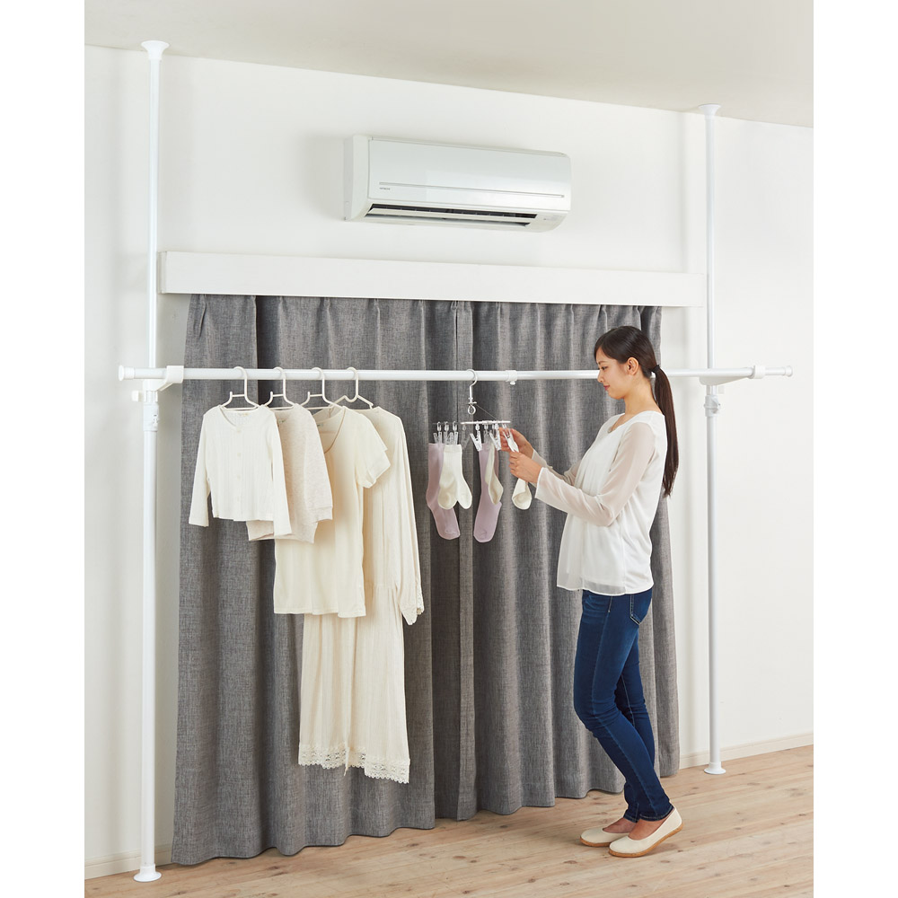 取り付け簡単 窓枠突っ張り物干し 伸縮竿 1本付き 布団干し 洗濯用品 物干し 581612