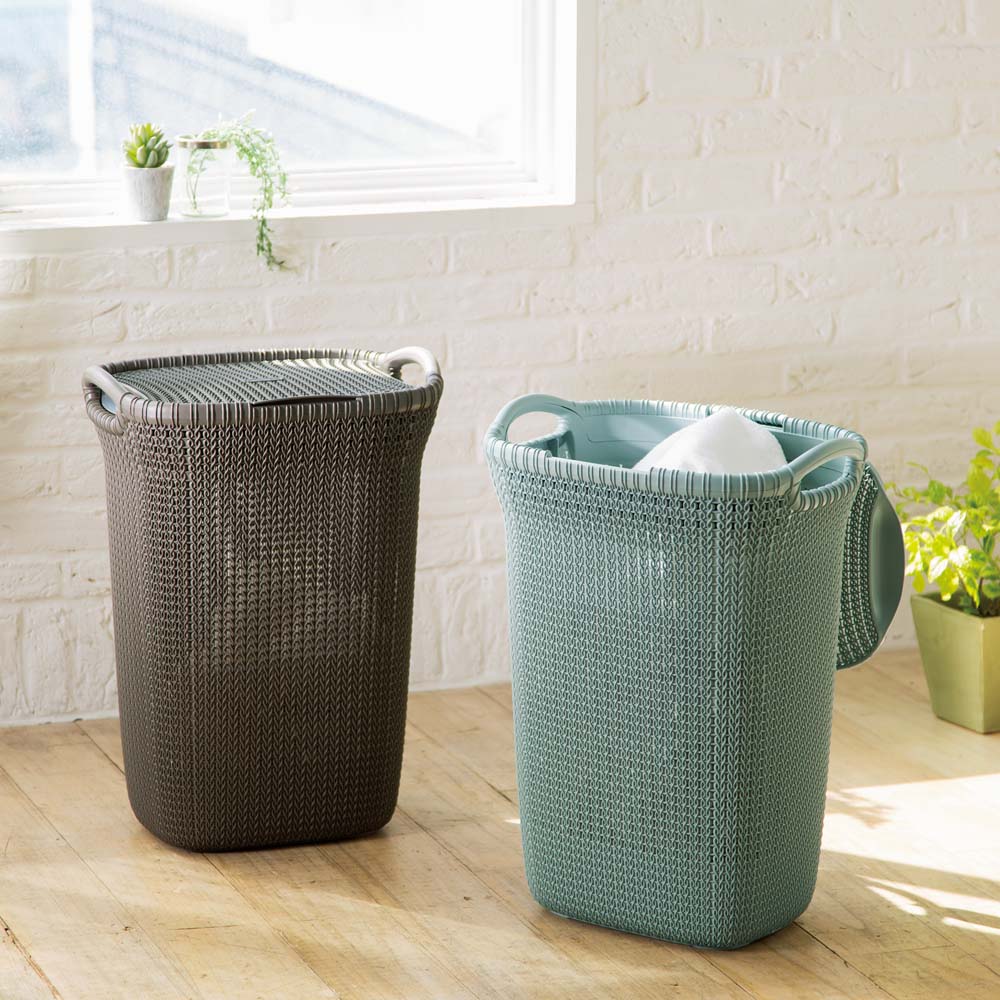 CURVER/カーバー ニット調ランドリーバスケット フタ付き縦型 ランドリー 洗濯かご トイレ 洗面所 ランドリー収納 KR1055