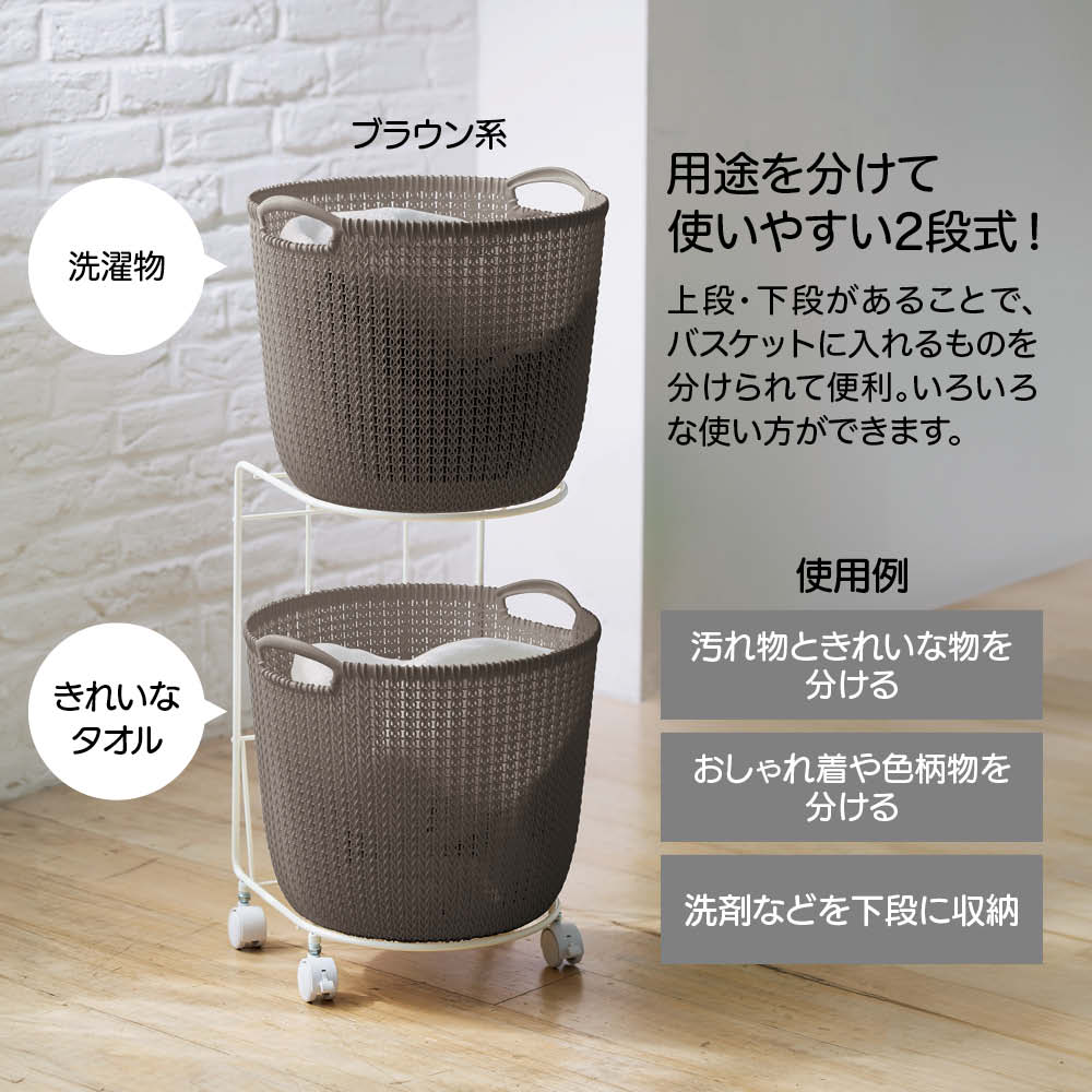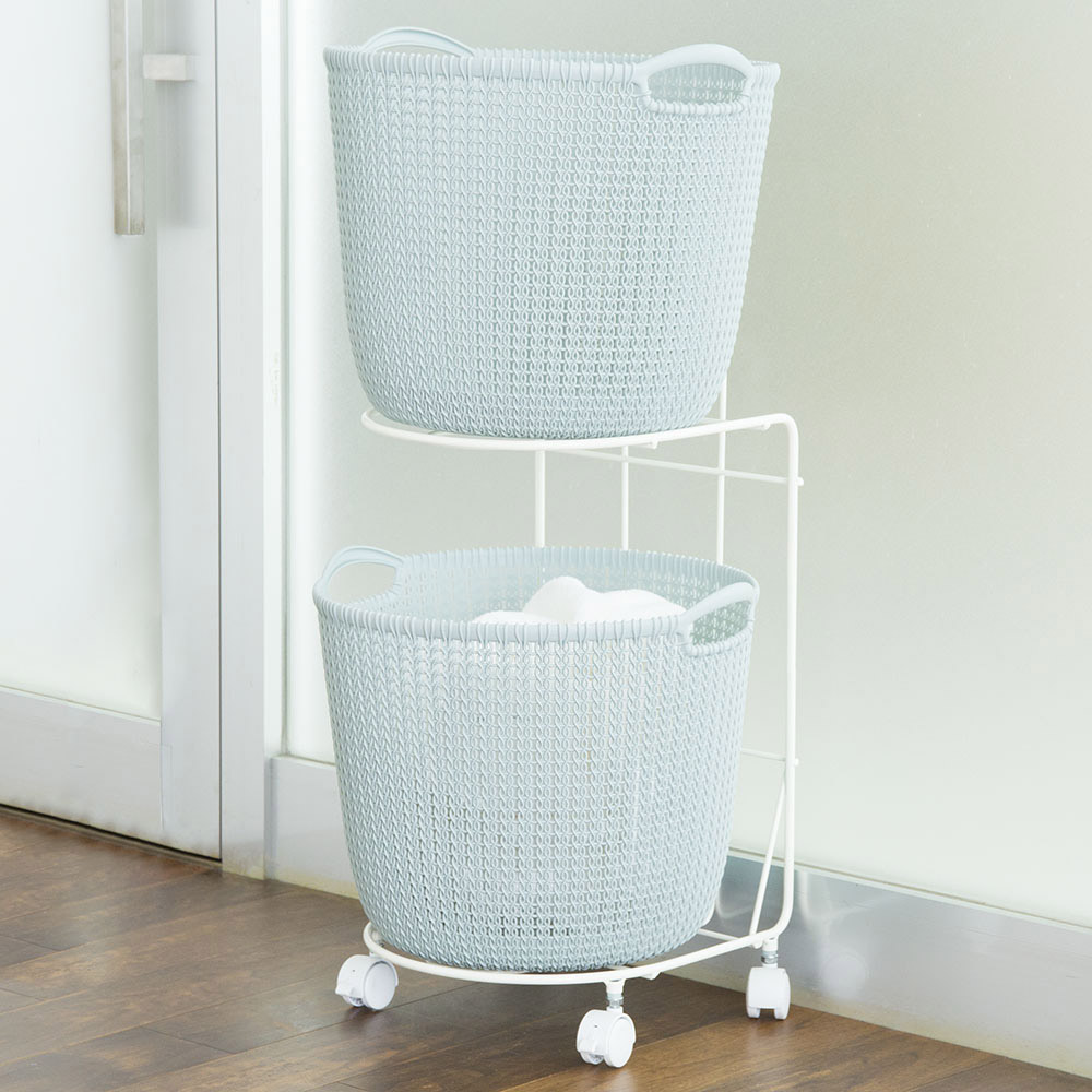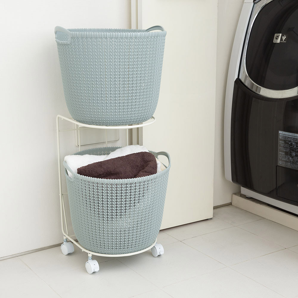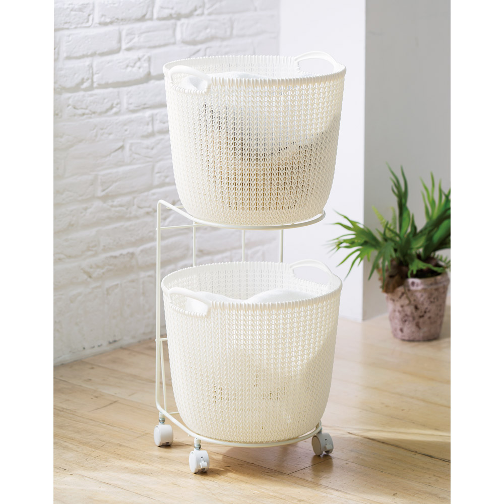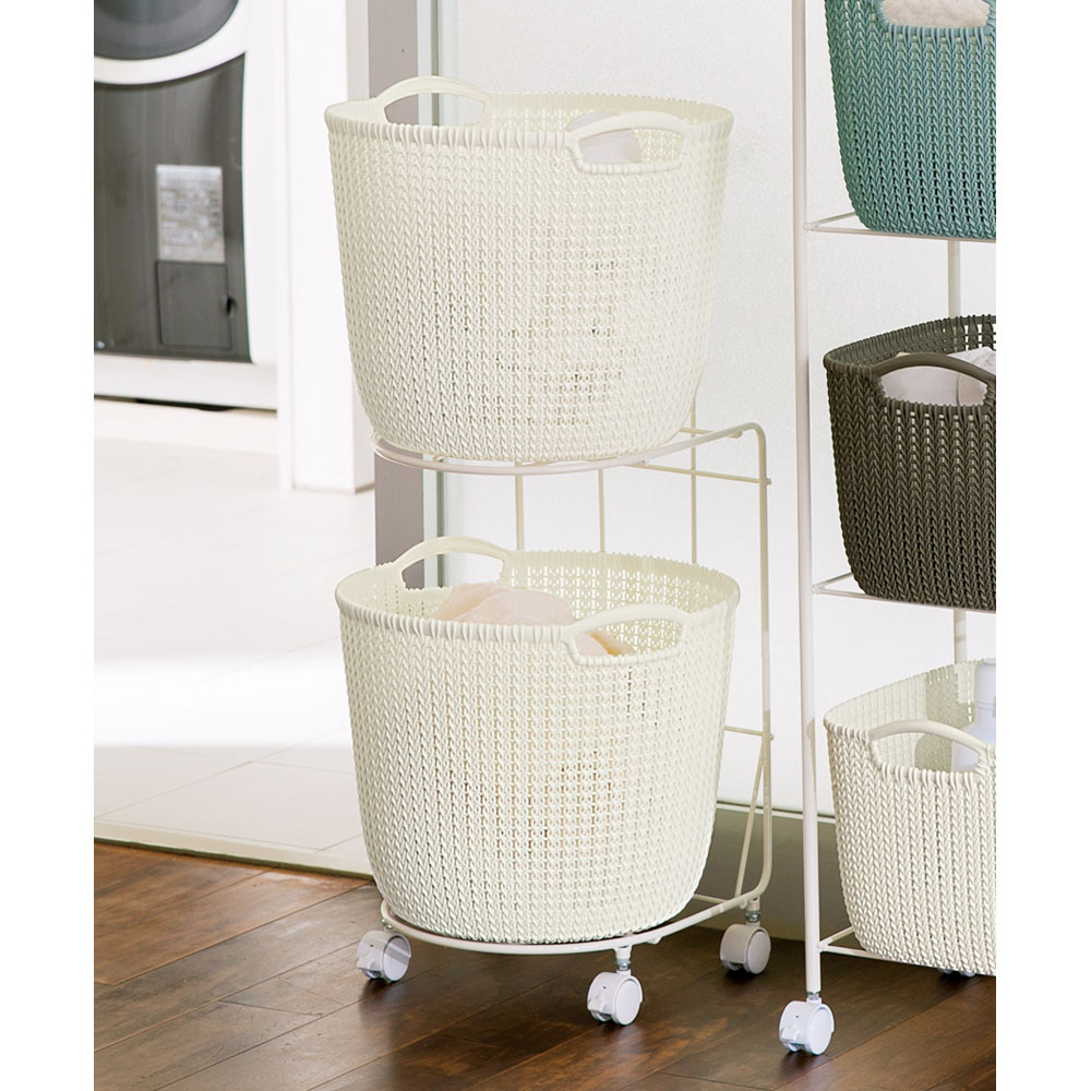 CURVER/カーバー ニット調ランドリーワゴン+バスケットセット(ラウンド用ワゴン2段+ラウンドタイプ×2個) ランドリー 洗濯かご トイレ 洗面所 622004