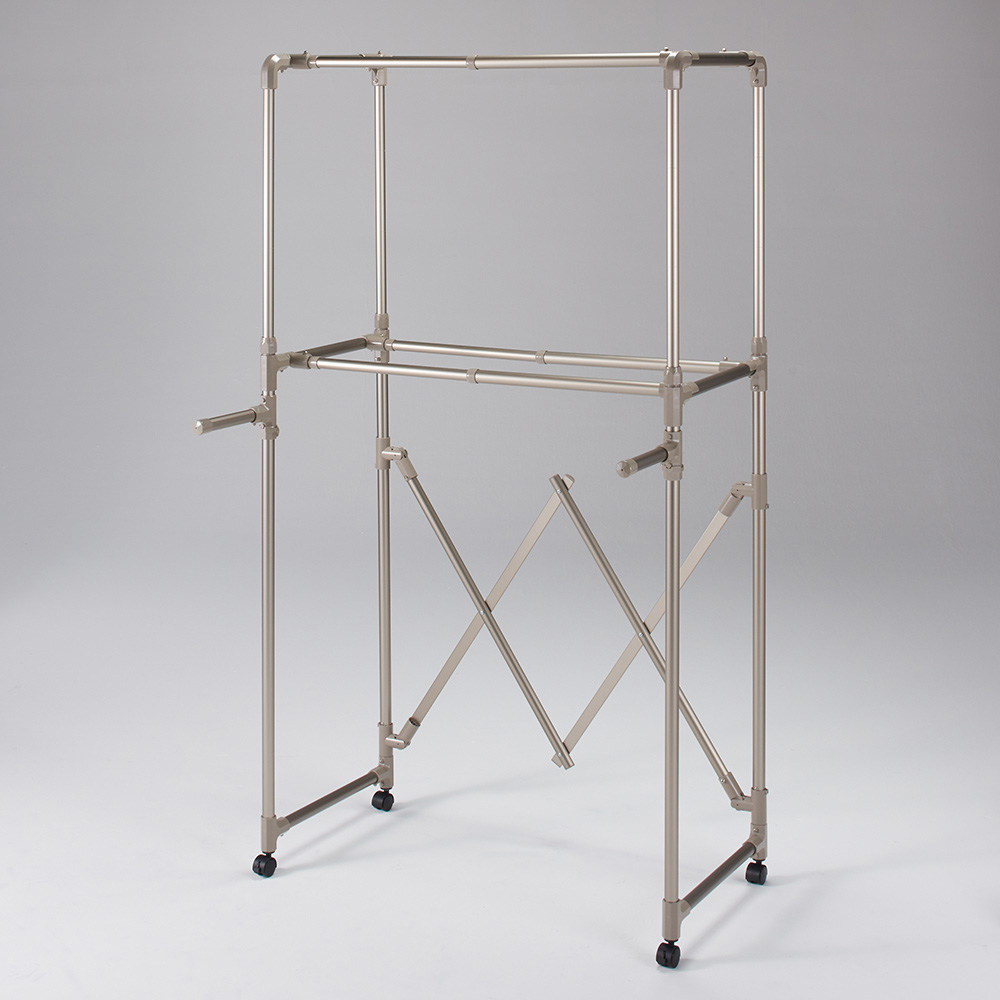 高さと幅を縮小すれば、洗面所や部屋の隅など小さなスペースでのちょっと干しも可能です。(イ)シルバー