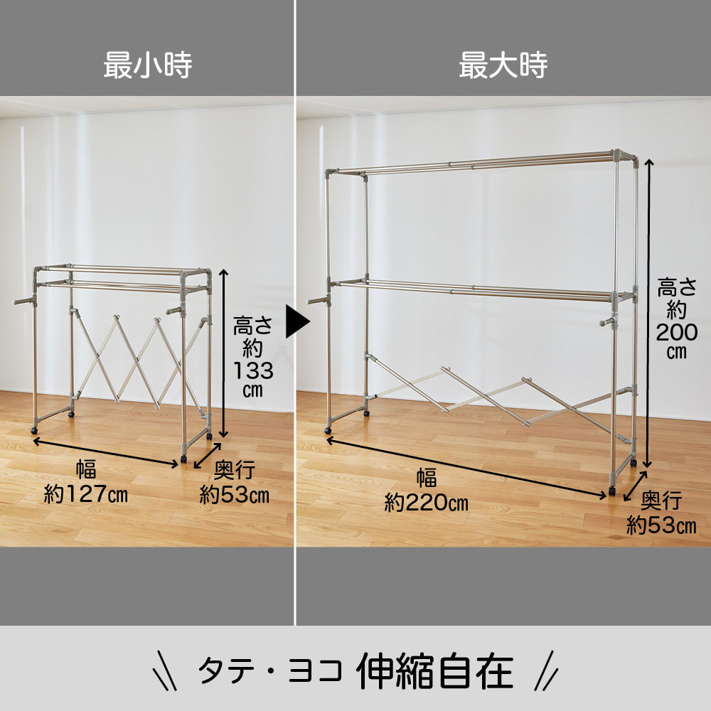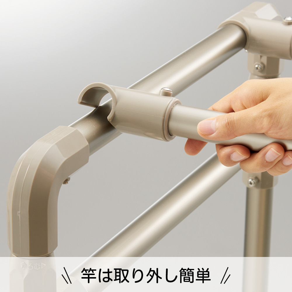 ●幅は最大220cmまで伸ばすことができ、竿も4本のセットが可能。