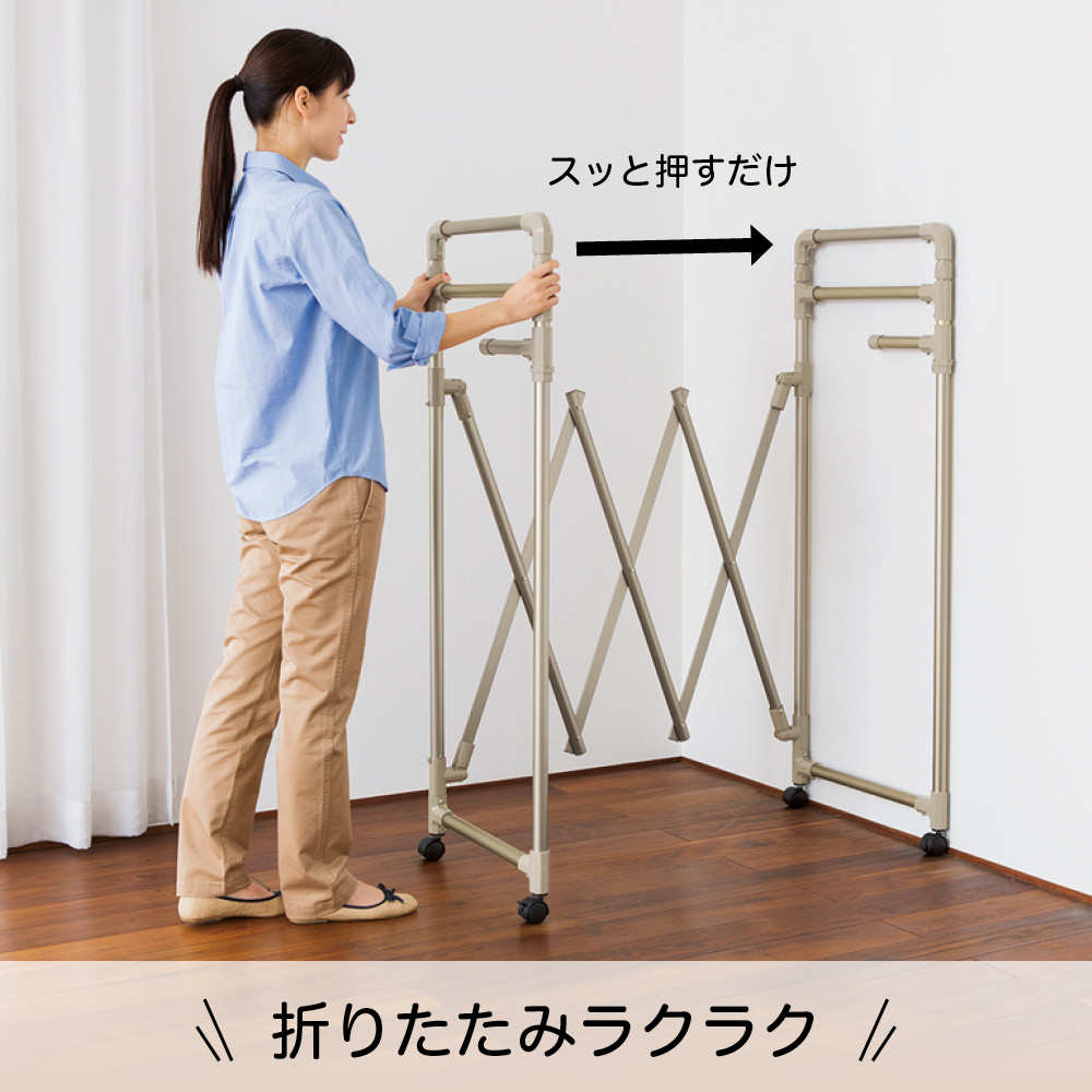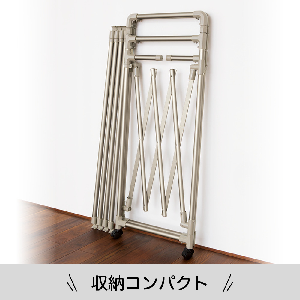 ●アルミ製で軽く、キャスター付きなので、エアコン下や日当たりのよい場所への移動もラクラク。スタイリッシュなデザインも◎。