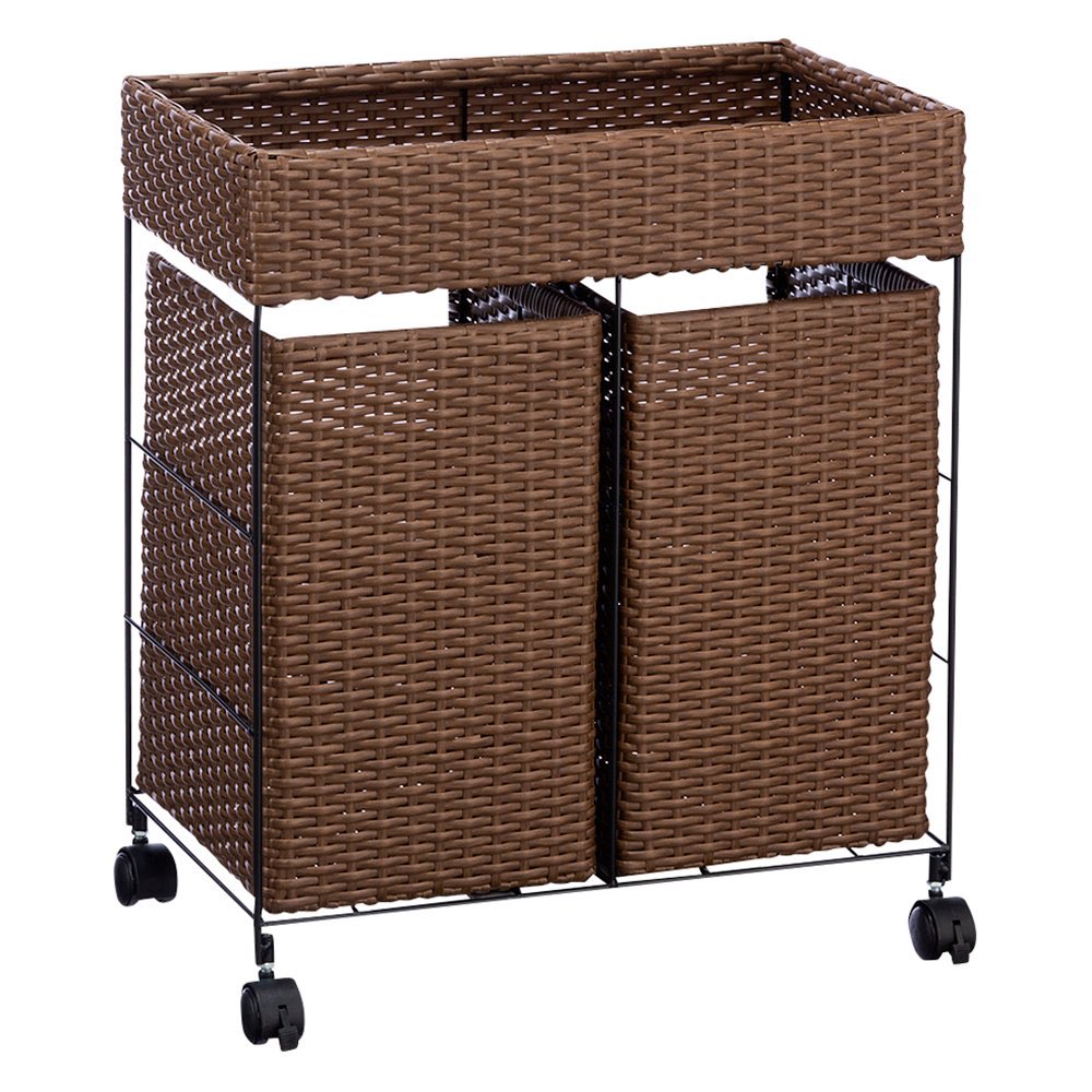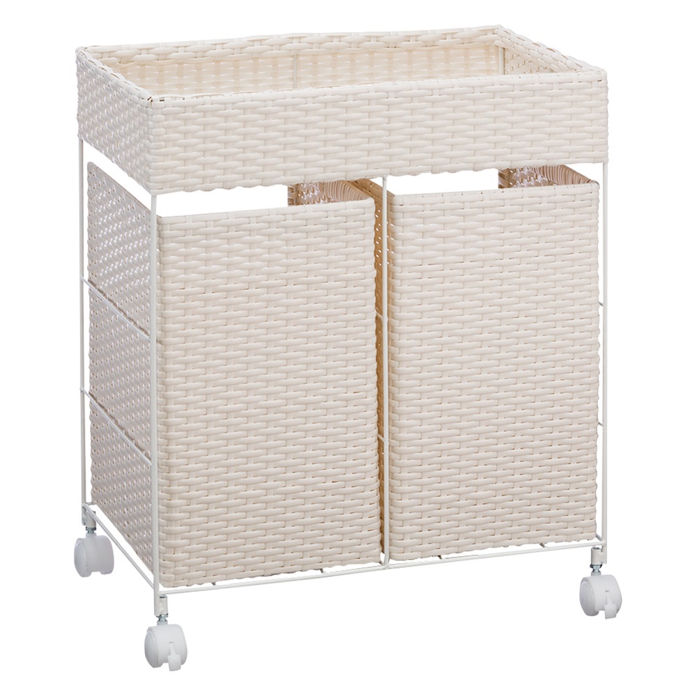 ラタン風分別ランドリーバスケット 2分別 ランドリー 洗濯かご トイレ 洗面所 ランドリー収納 KR1057
