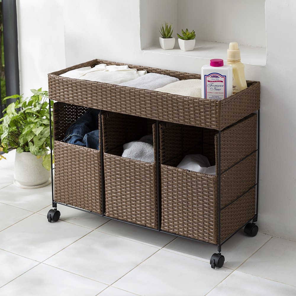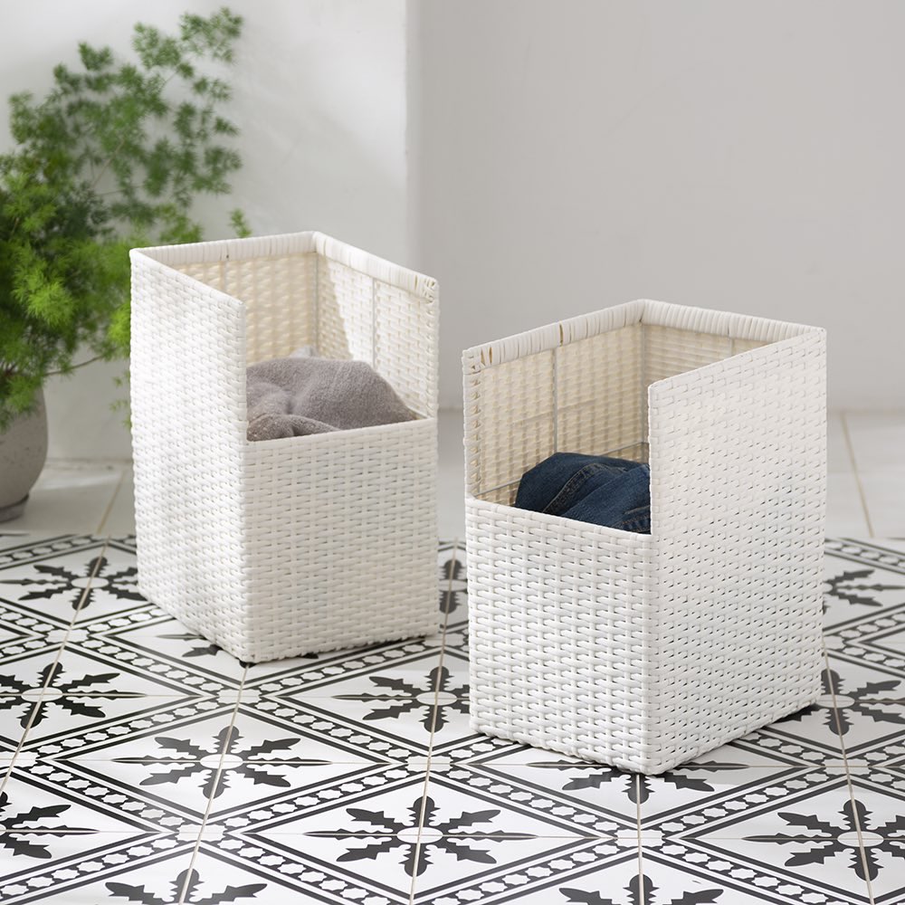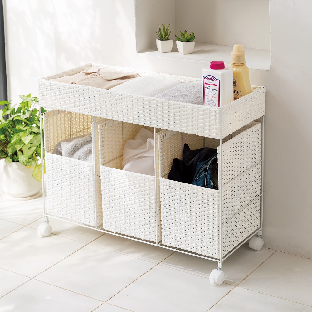 ◆ナチュラルなラタン調デザインで、脱衣所のインテリアにもなじみます。◆本体は樹脂素材なので水やに強く、湿った洋服でも安心です。