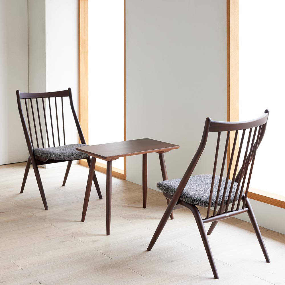 ディノス50周年記念モデルが人気を博したことをきっかけに、通常モデルの取り扱いもスタート。今回はダークブラウン色に加え、ナチュラル色も追加。それぞれのフレームに合うように座面の生地色も変えています。ハウススタイリングは、HIDA(飛騨産業)の正規販売店です