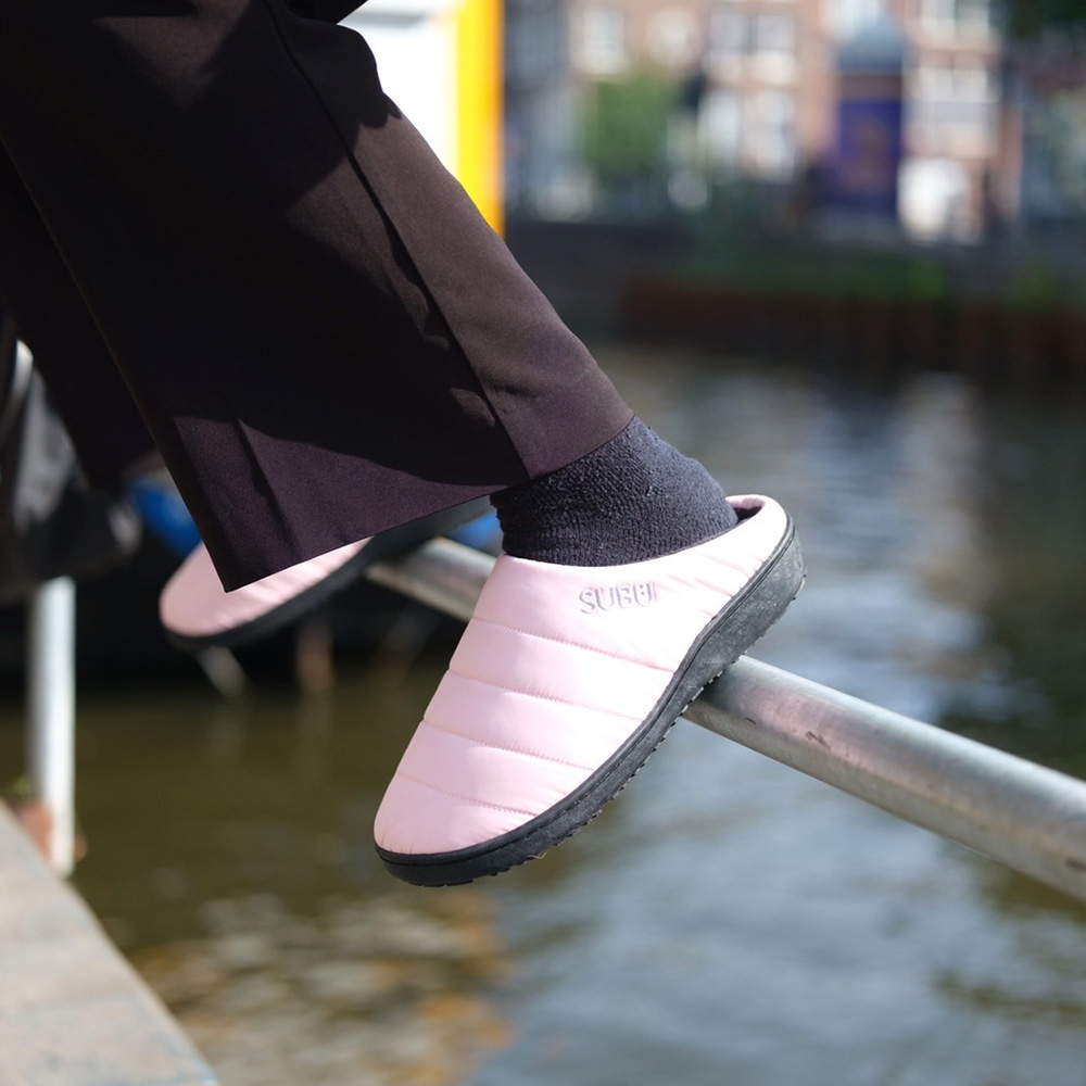 素足で履くのはもちろん、ファッショナブルな色使いのSUBUとお気に入りの靴下とのコーディネイトを楽しんで。