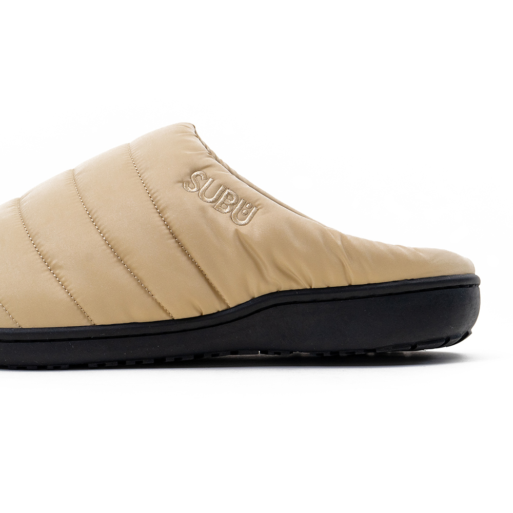 ●アッパーはダウンジャケットのような見た目でSUBUのロゴ入り。テフロン加工を施しており、水や汚れをはじきます。