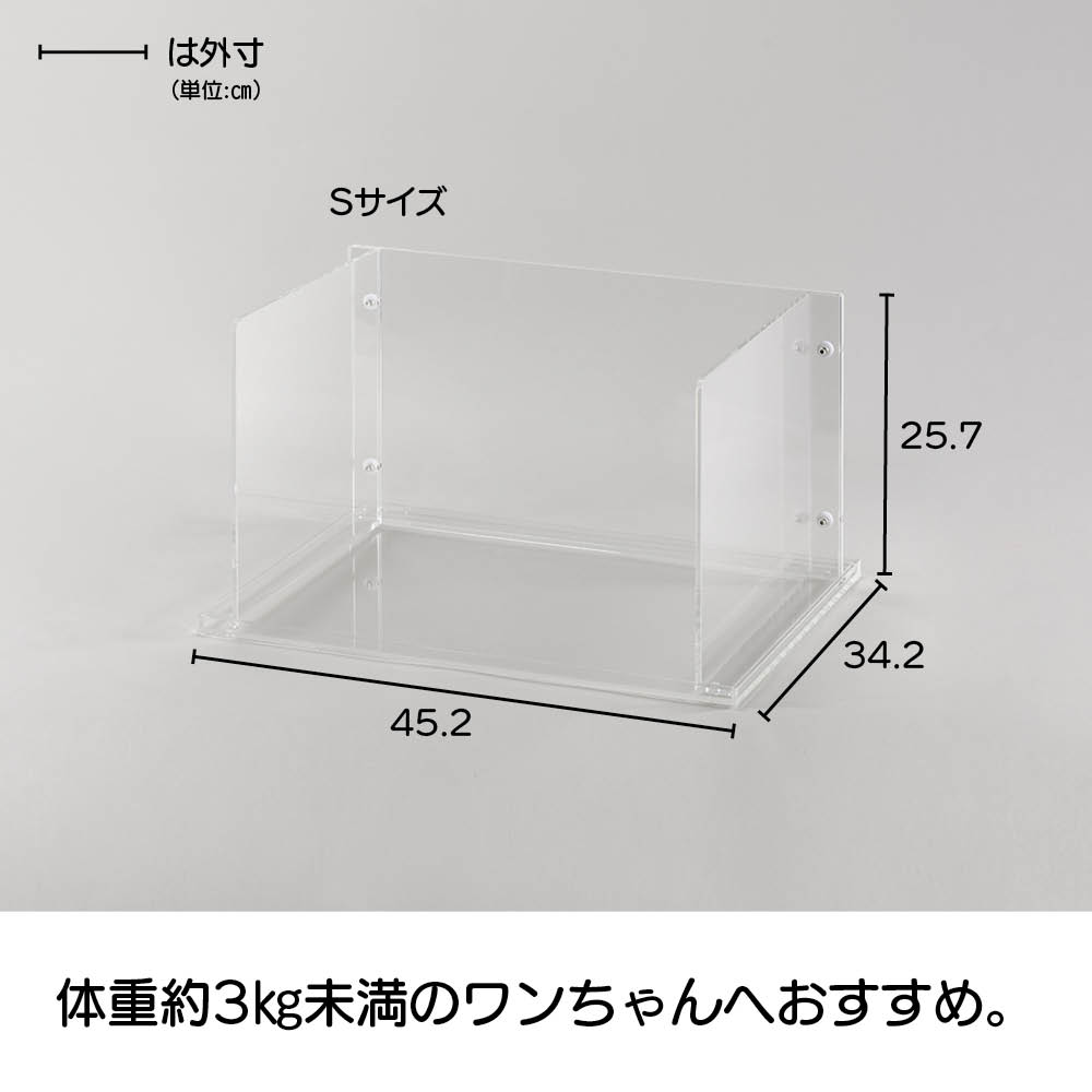 お部屋に置いてもこだわりのインテリアを邪魔しない透明感。体重3kg未満の小さなワンちゃんにはSサイズがおすすめです。