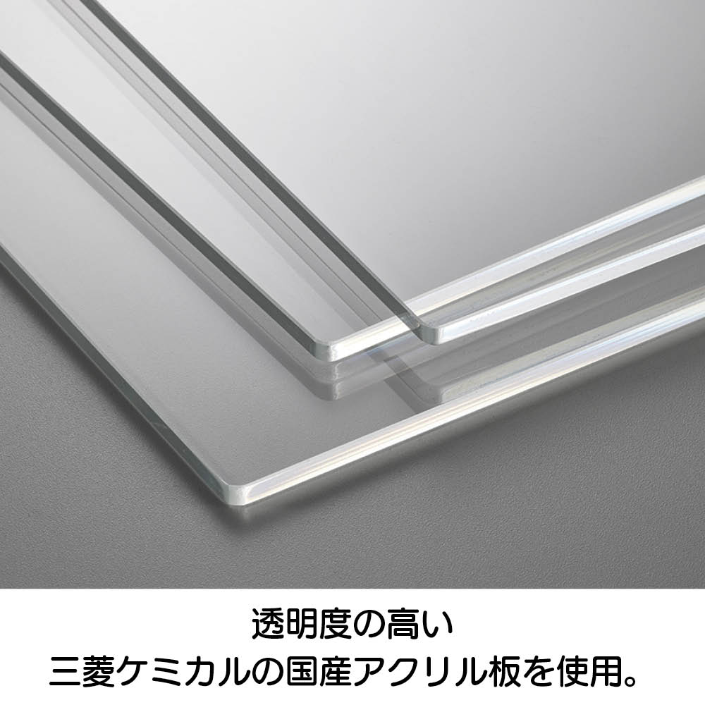 アクリルの扱いに長けたメーカーが、その高い透明度を生かして細部にまでこだわって製造する、安心の日本製。職人が一つひとつ丁寧に加工しています。商品画像の説明