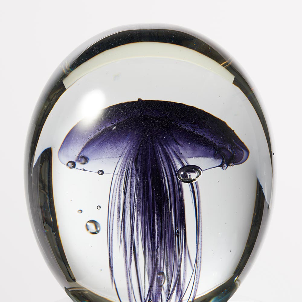 水中にゆったり漂うクラゲの姿をそのまま閉じ込めたかのよう。ガラス職人が繊細な触手まで表現しながら丁寧に作り上げた、幻想的なオブジェです。