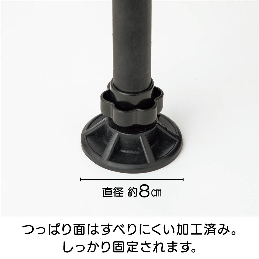 設置したい場所を決めたら、調節ボタンを押しながら天井まで伸ばし、ぐっと押し付ければ設置完了。上下にすべり止めが付いているので安定して設置できます。