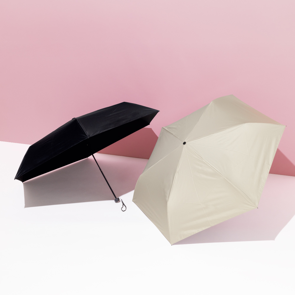 たたむとコンパクトなのに、広げると予想外の大きさ。紫外線はもちろん、雨の日も荷物までカバーできる心強いサイズ感です。一級遮光生地でしっかりUVカットしながら、遮熱効果で傘の下は木陰感覚。スムーズな開閉も使いやすいポイント!