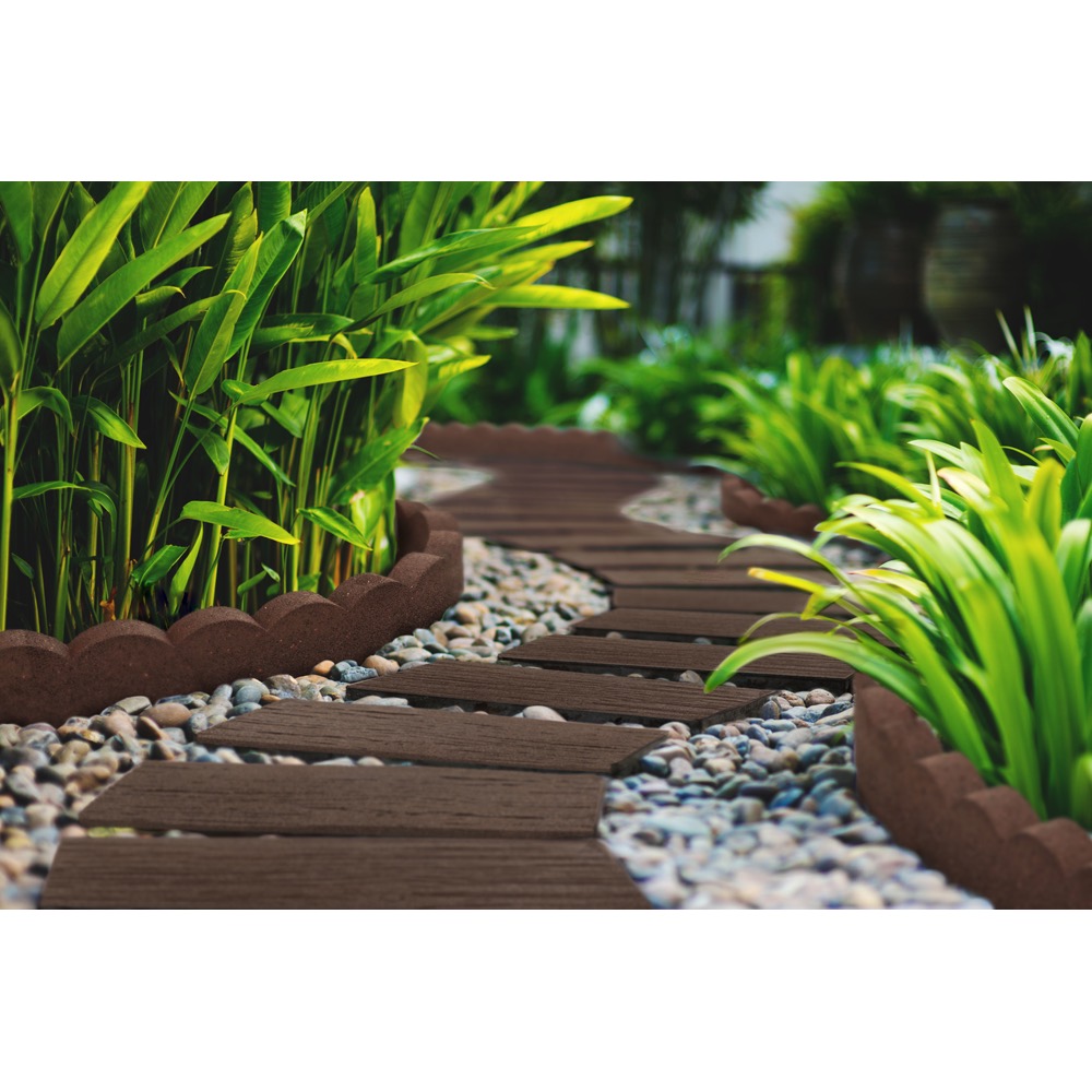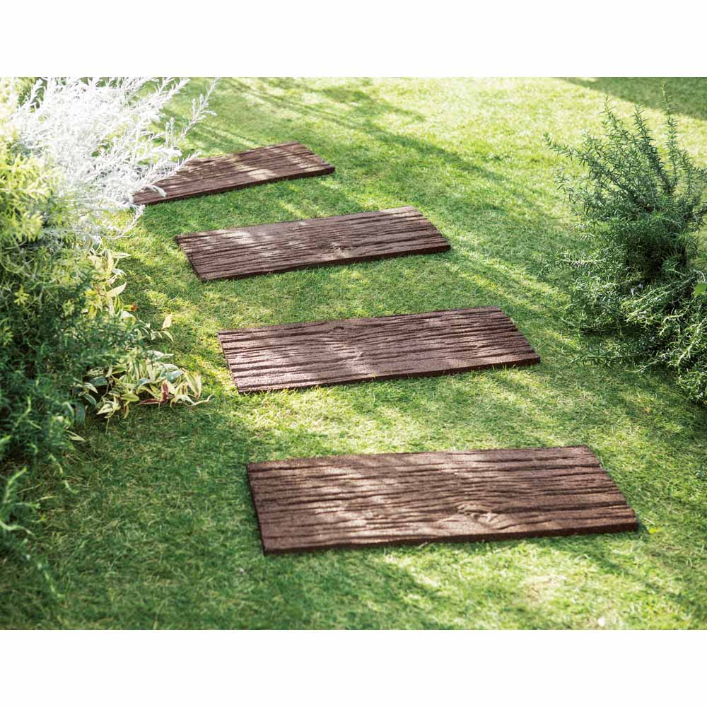 天然木調の風合いをリサイクルラバーで再現。軽くて扱いやすく、置くだけで手軽におしゃれな小路をつくれる優れもの。