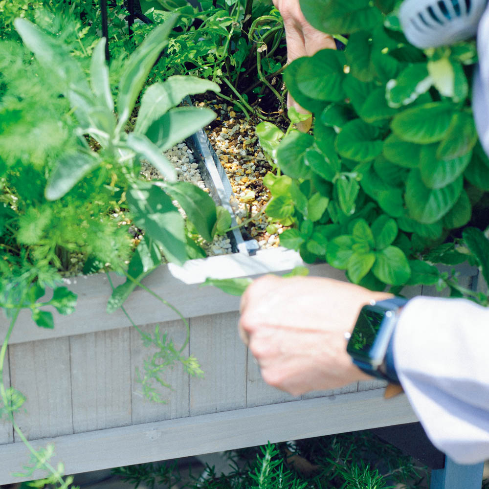 ・料理のスパイスやお茶など、自分で育てたハーブを毎日にとりいれて。・吉谷さんがブログで、ベジトラグのハーブを使ったレシピを紹介しています。ぜひご覧ください。