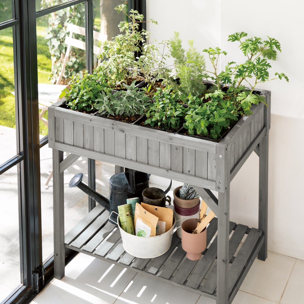 ・イギリス「ベジトラグ」ブランドが企画したハーブのためのプランター。・仕切り棚をつけて、好む環境ごとに区分けして植えられるよう配慮。