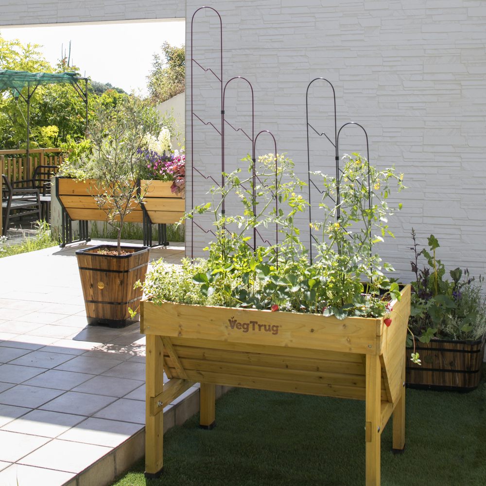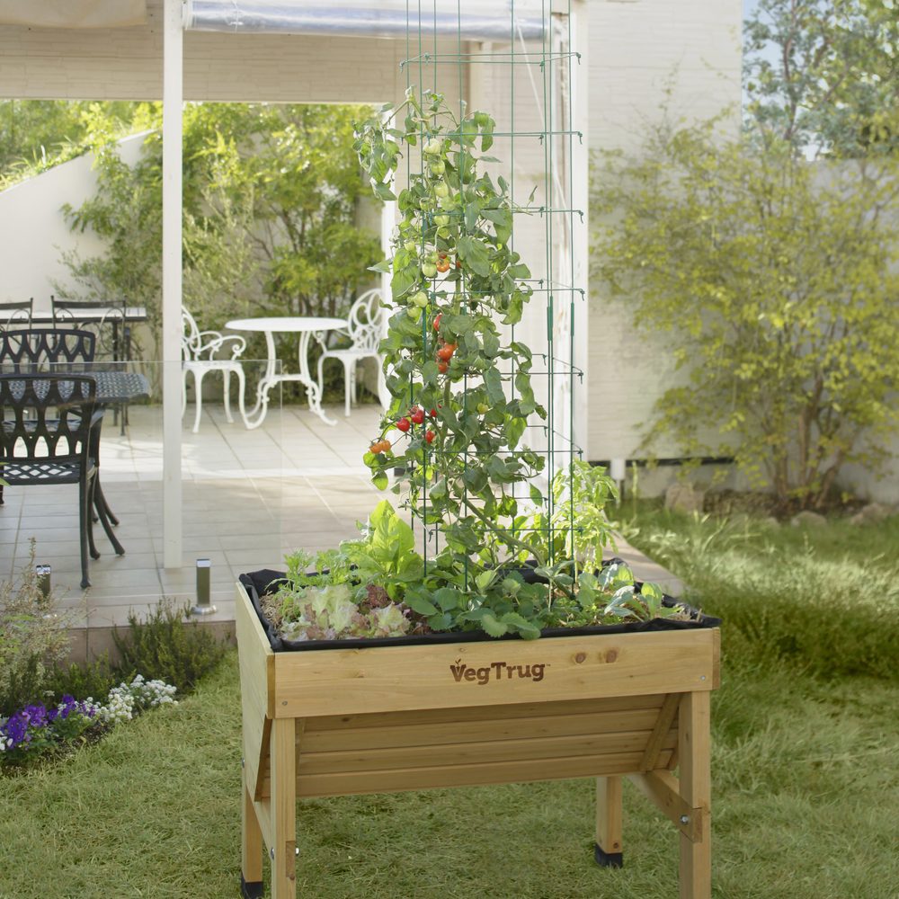 独自の「V型形状」により根を張る根菜など、さまざまな野菜や植物を育てることができます。腰を屈めずに作業ができる高さなので、水やりや植え替え、メンテナンスが楽に行えます。また、腰の悪い方や、車椅子に乗ったままでも作業ができます。