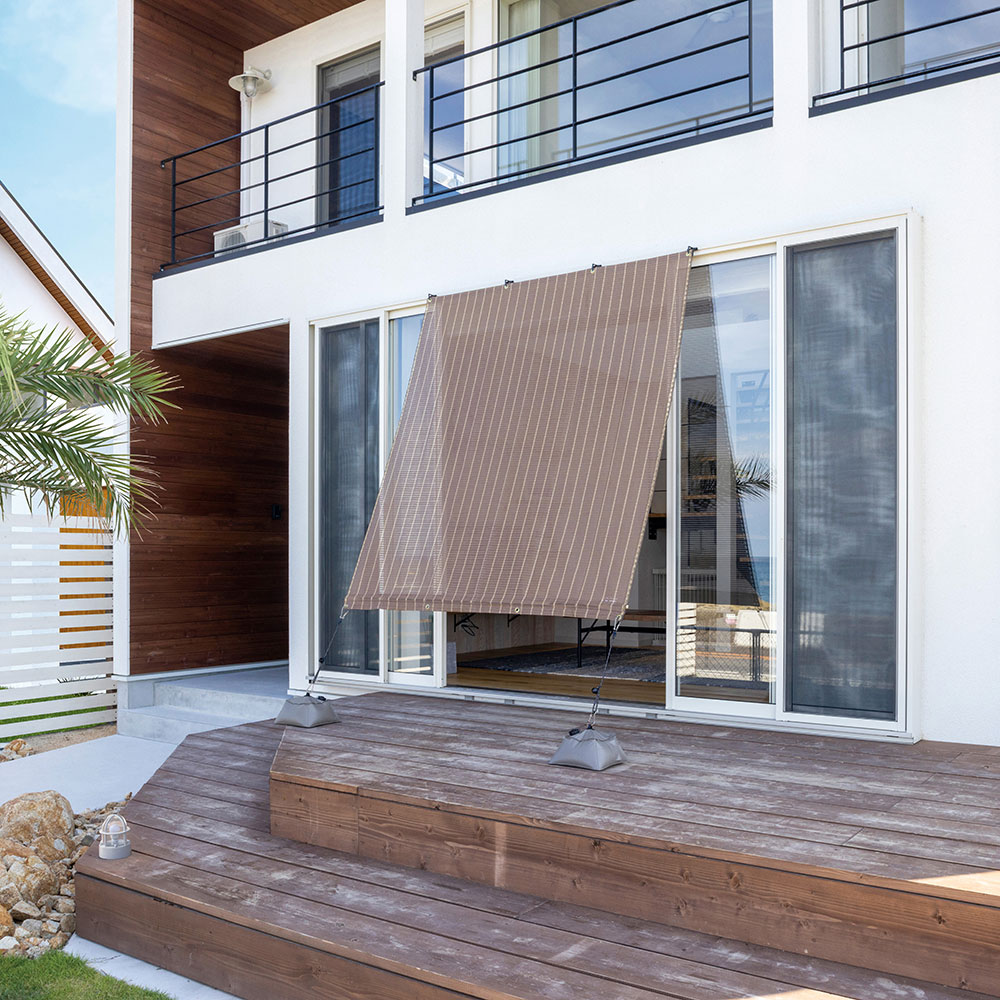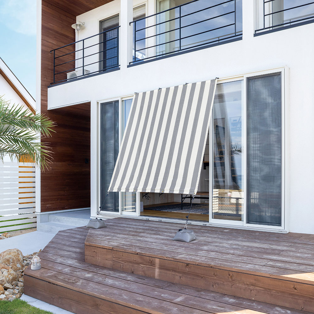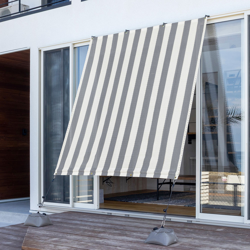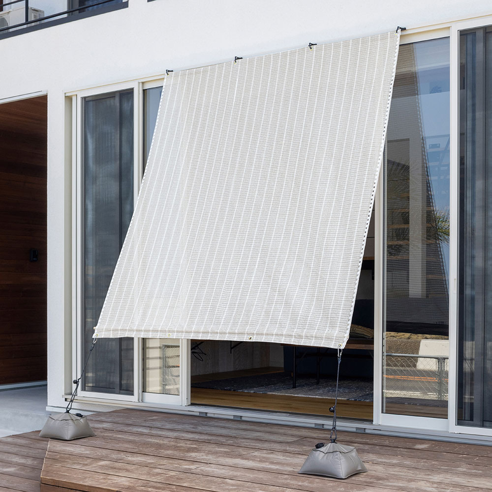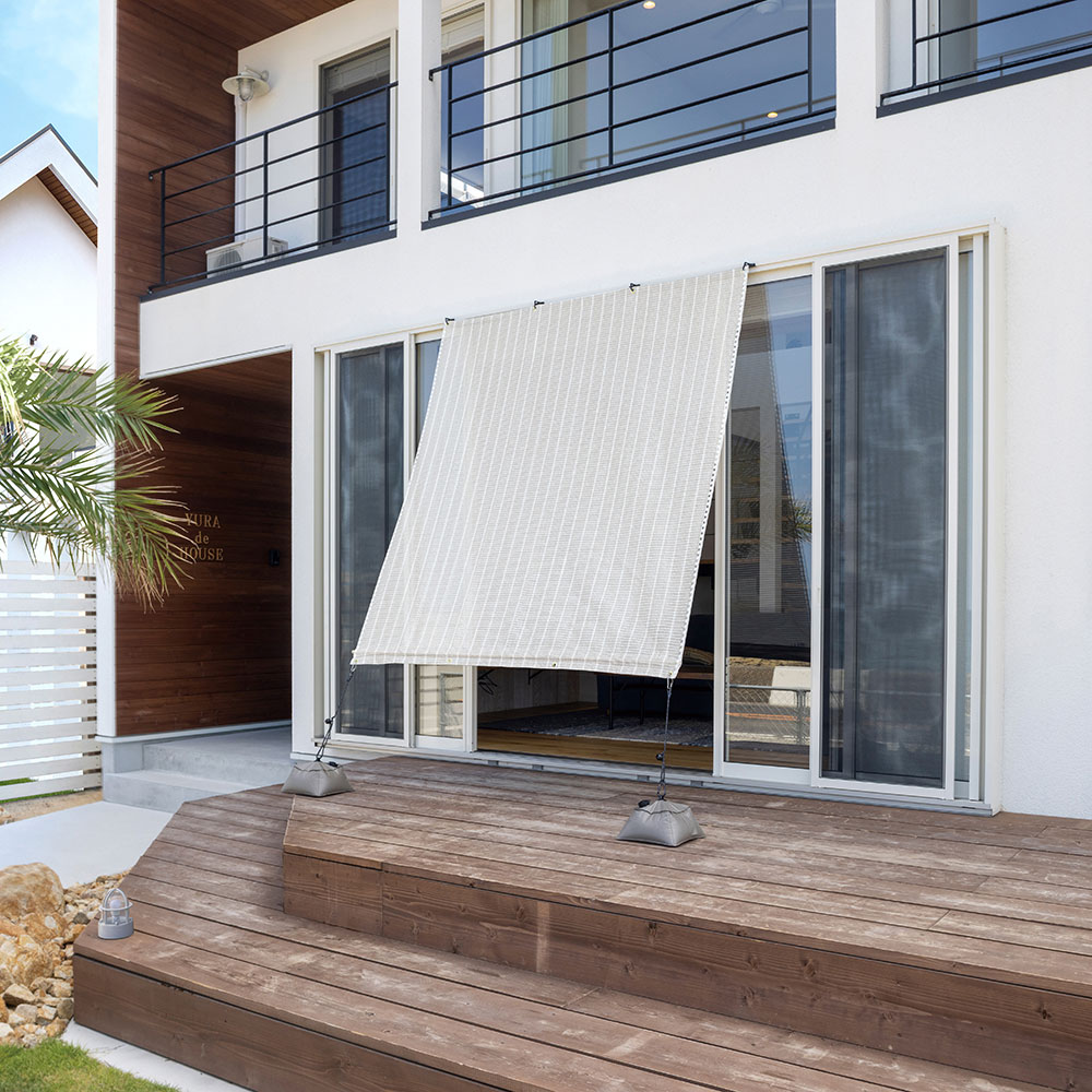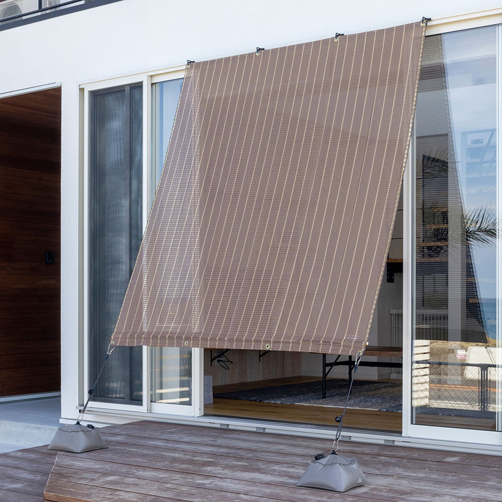 お洒落でロープライス、タフ素材で機能充実。紫外線をしっかりカットして風はほどよく通します。設置は簡単、ひもで固定するだけ。