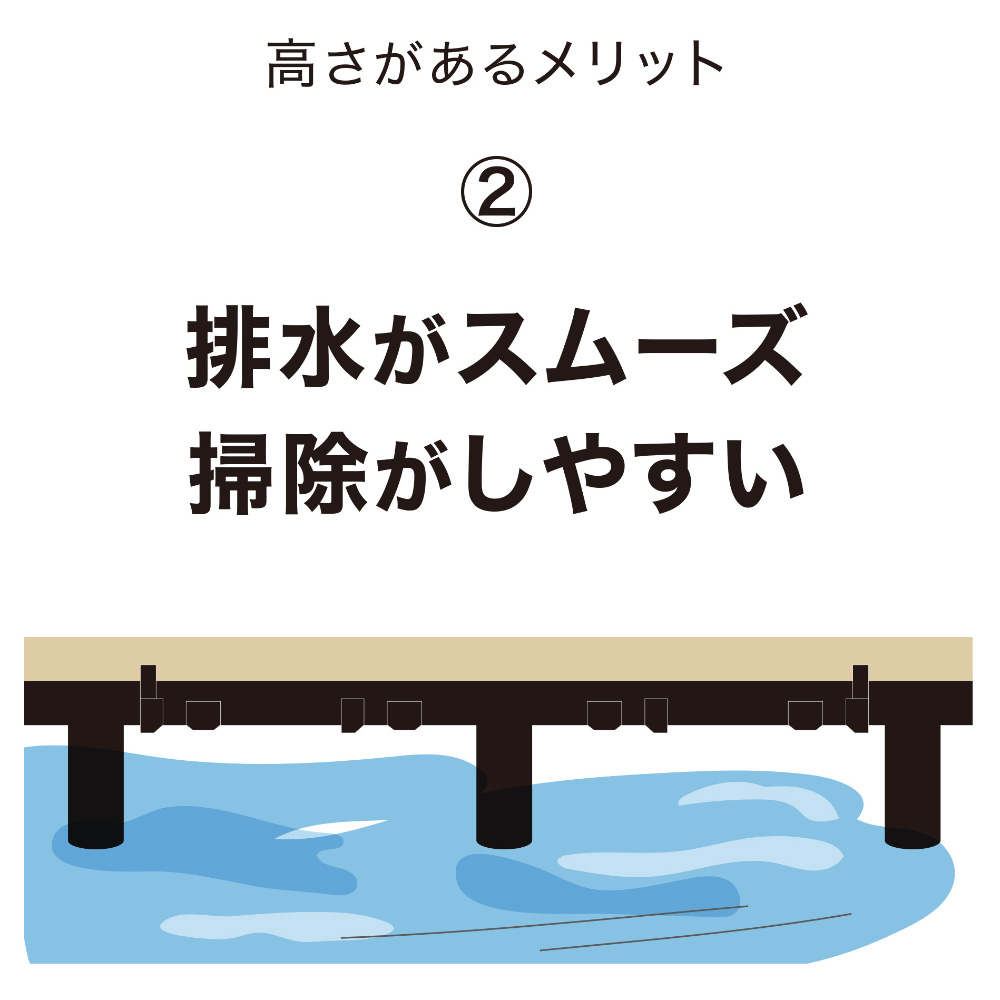 床下の高さが2.2cmあるので、ゴミや枯れ葉がたまりにくく、排水性が抜群です。