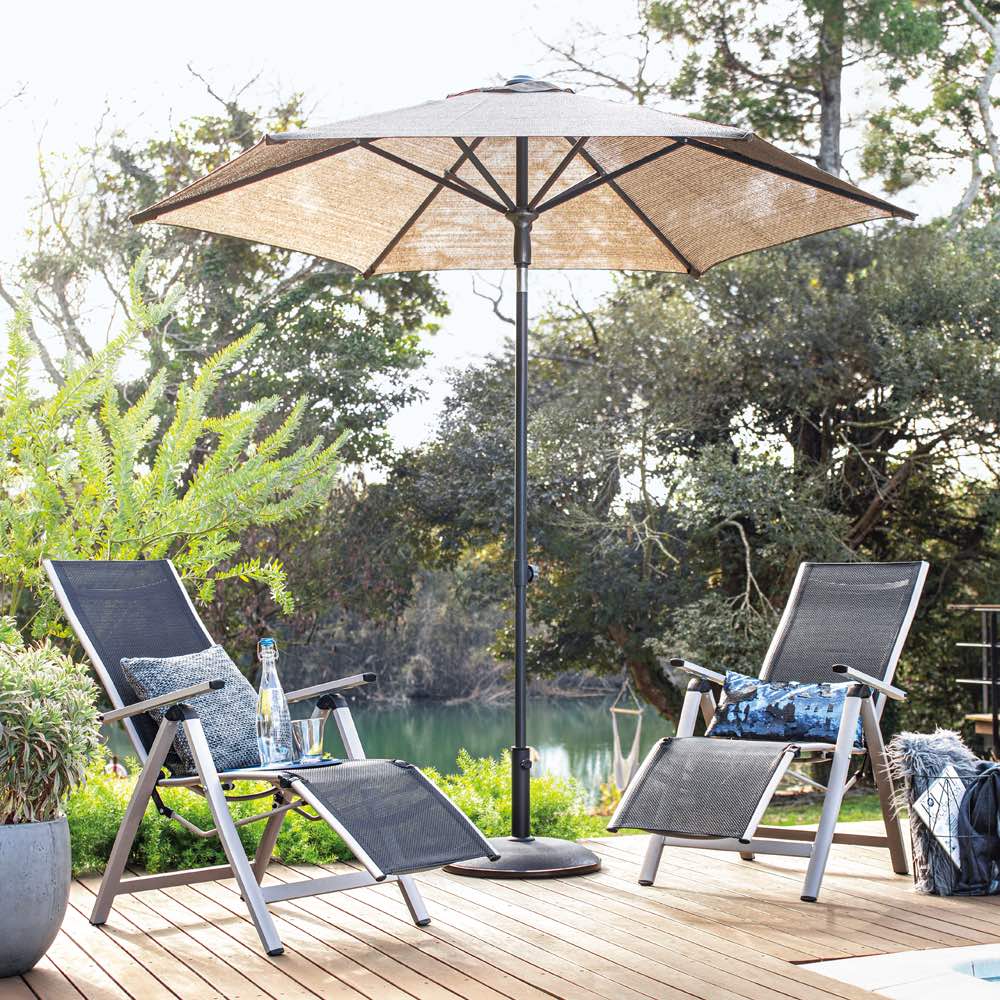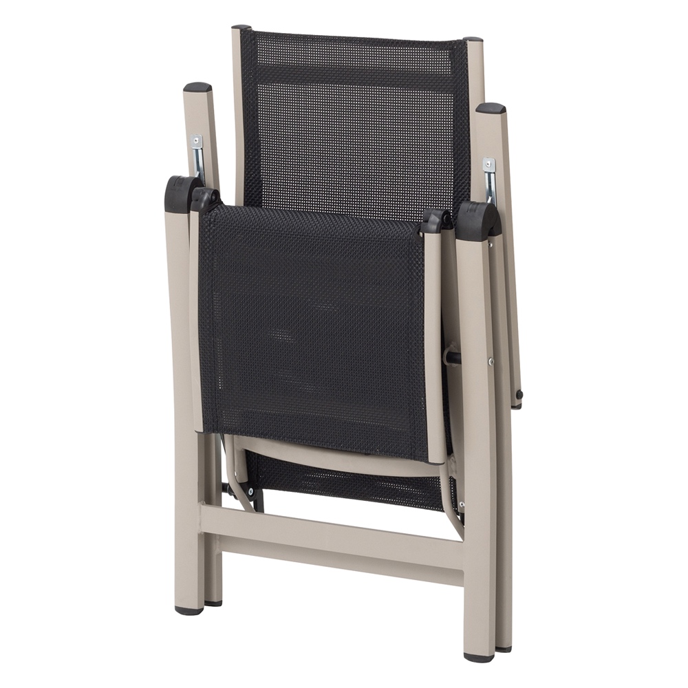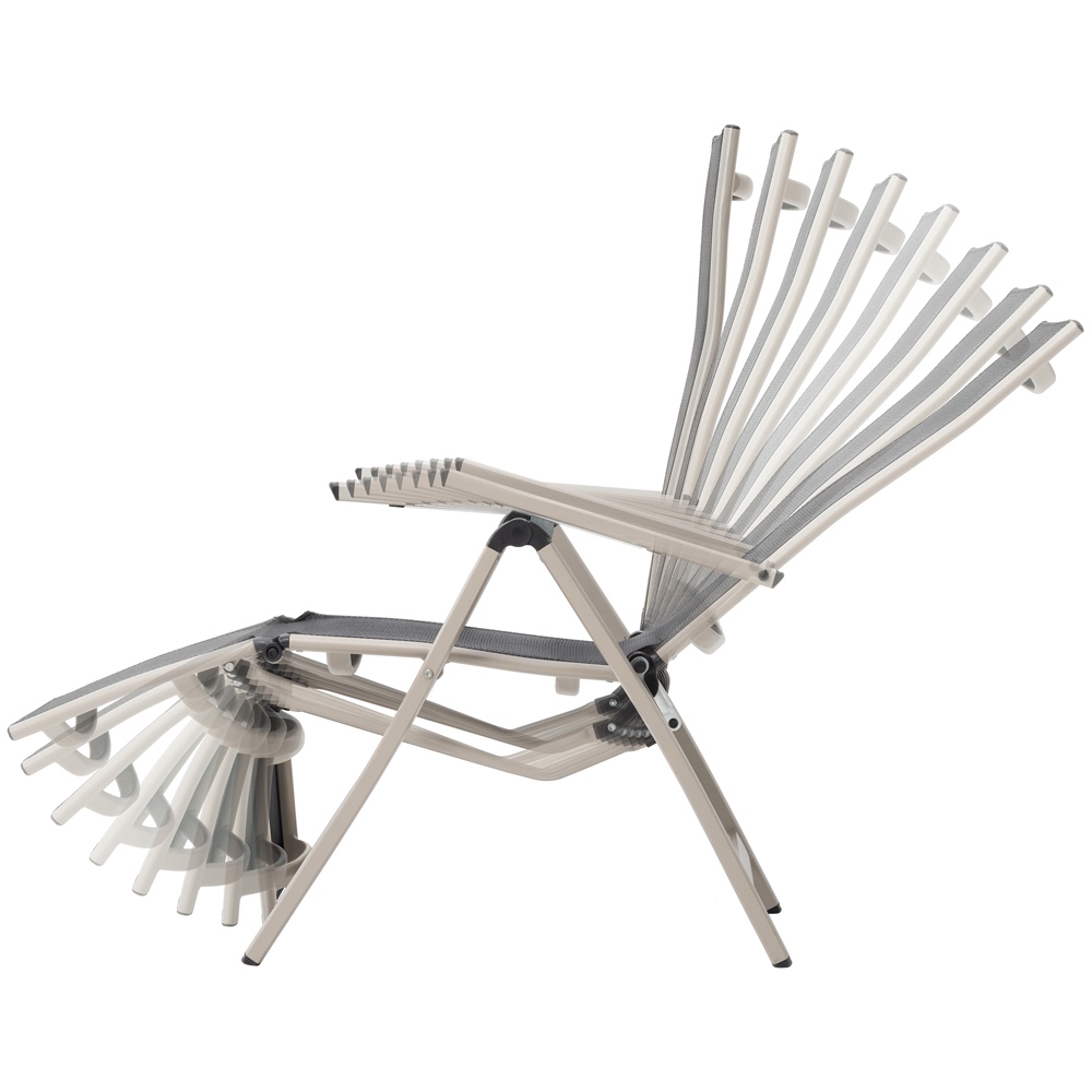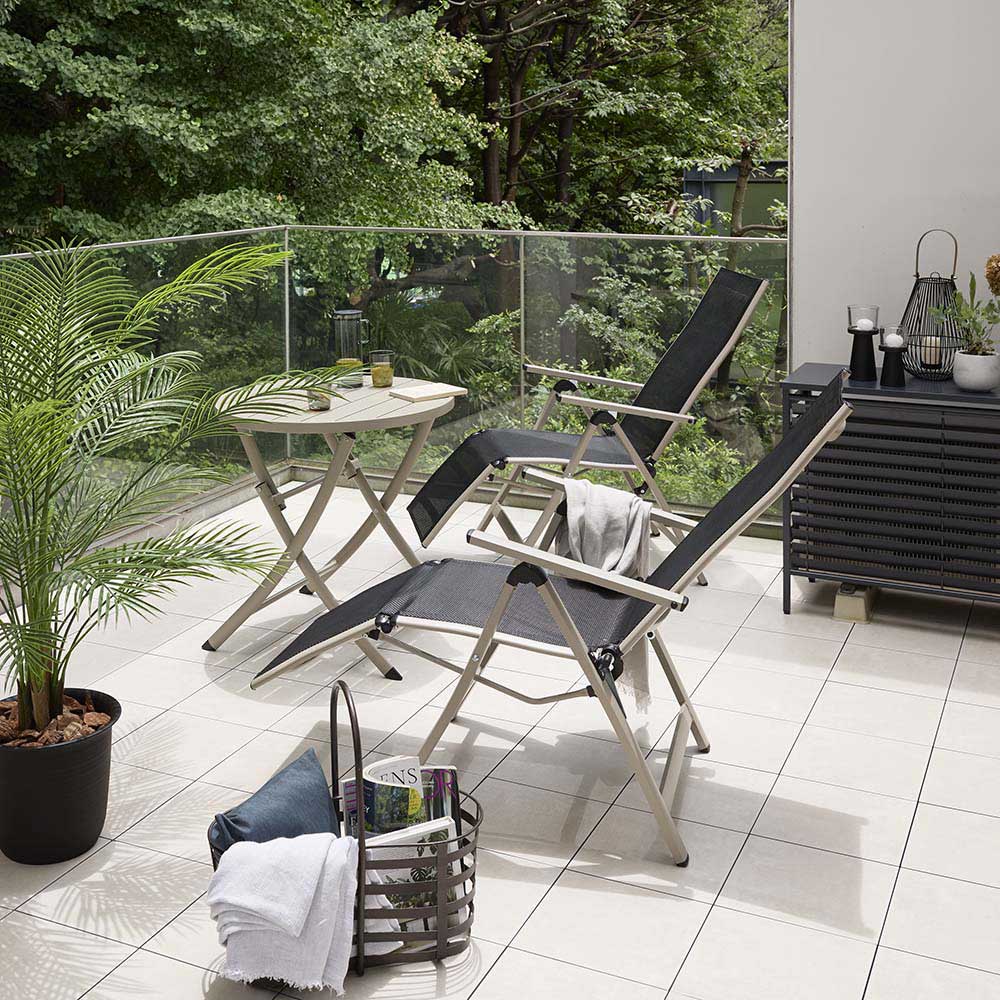 チェアはガーデンのダイニングチェアにも、リクライニングチェアにもなる設計。