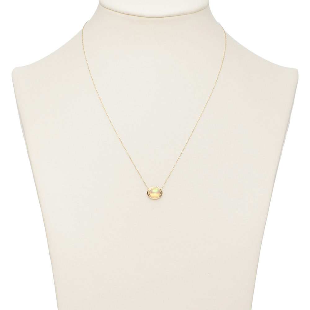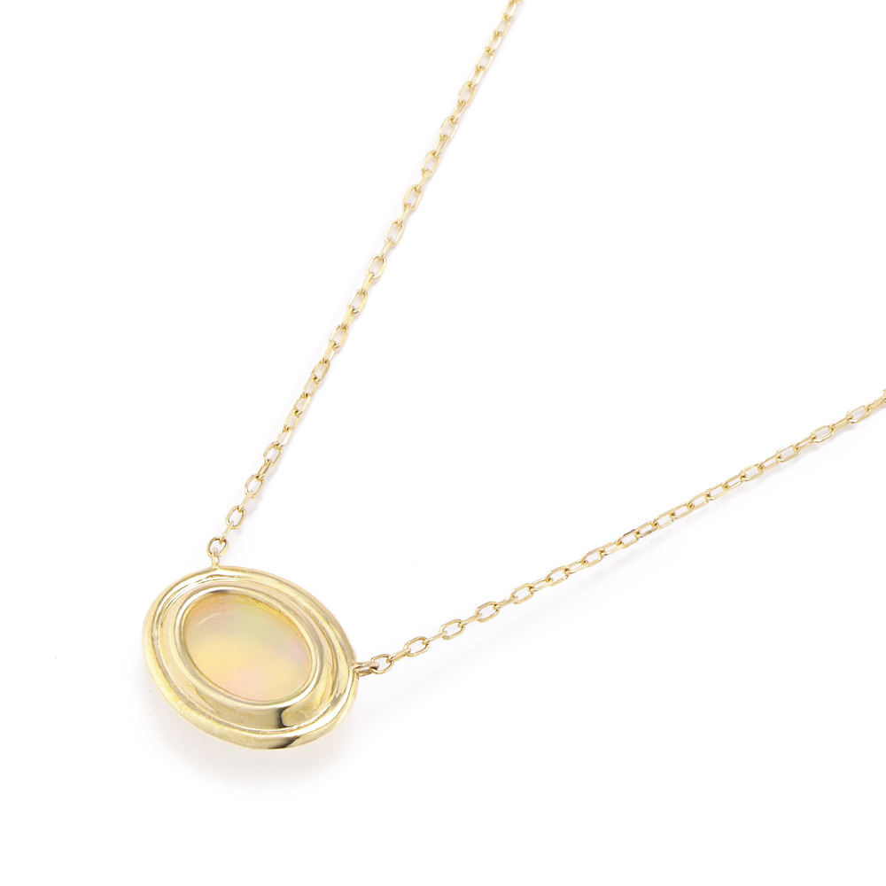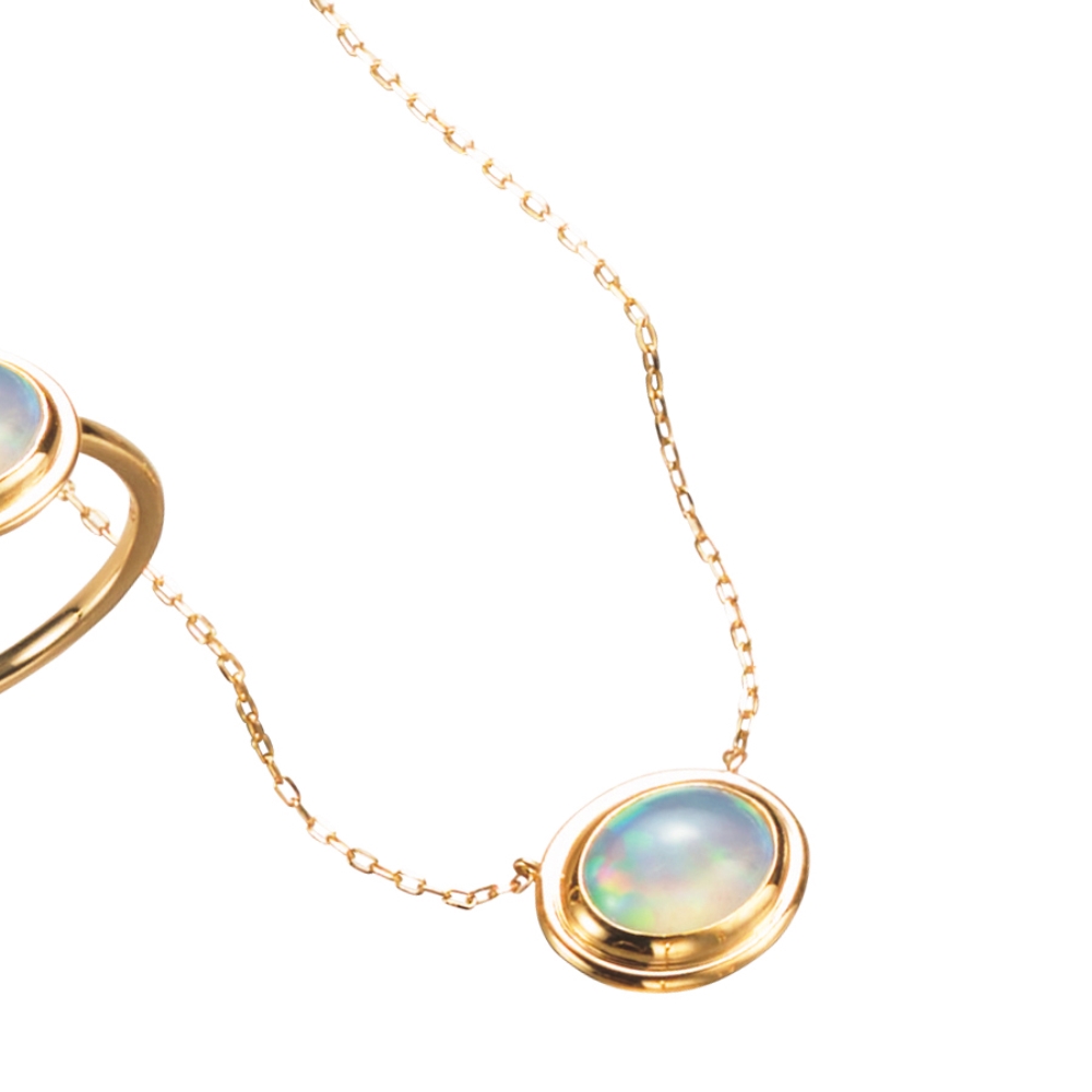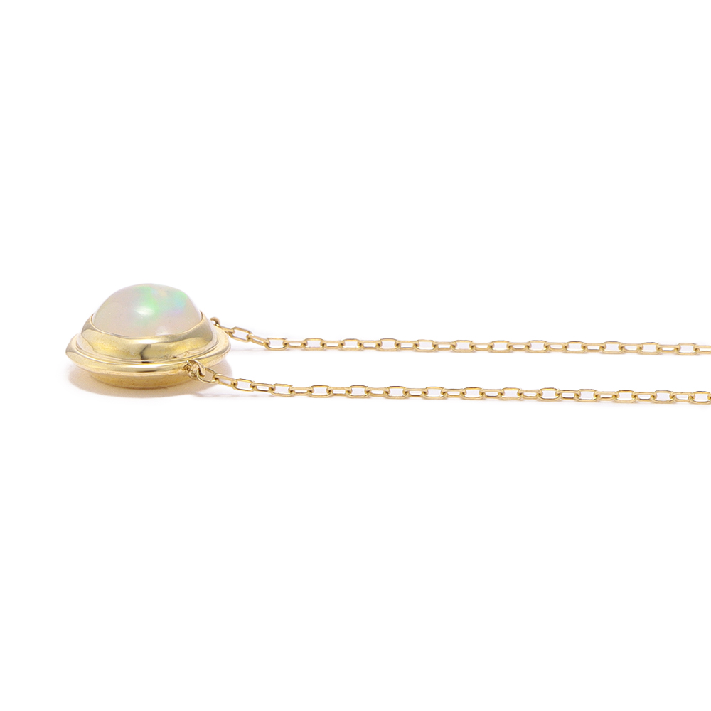 奥行きある輝きのオパールが主役のペンダント。角度によってオーロラのように艶めき、着ける人の魅力を引き立てます。商品画像の説明
