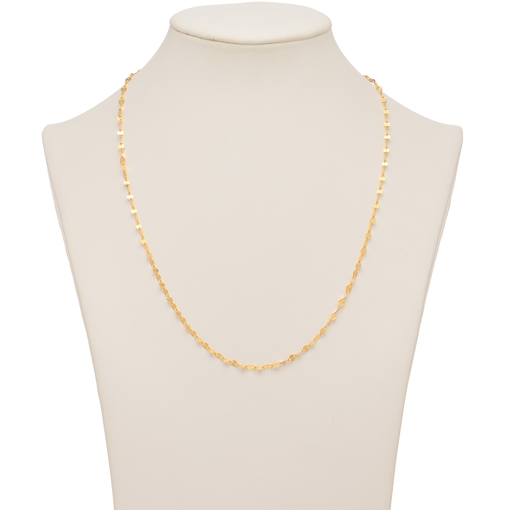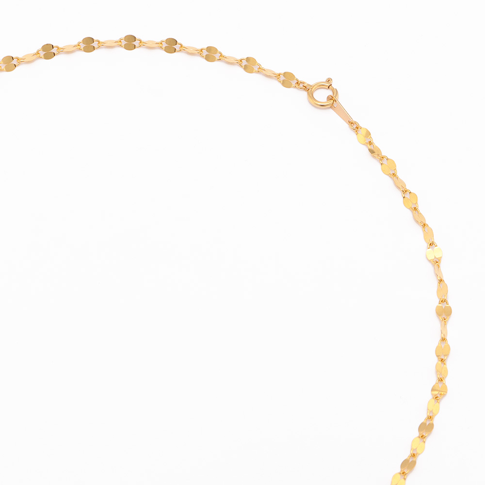 風格のある純金の輝きに、瞬くような煌めきが美しいネックレス。純金の広い鏡面が様々な角度に光を反射し、華やかに輝く人気のペタルチェーン。