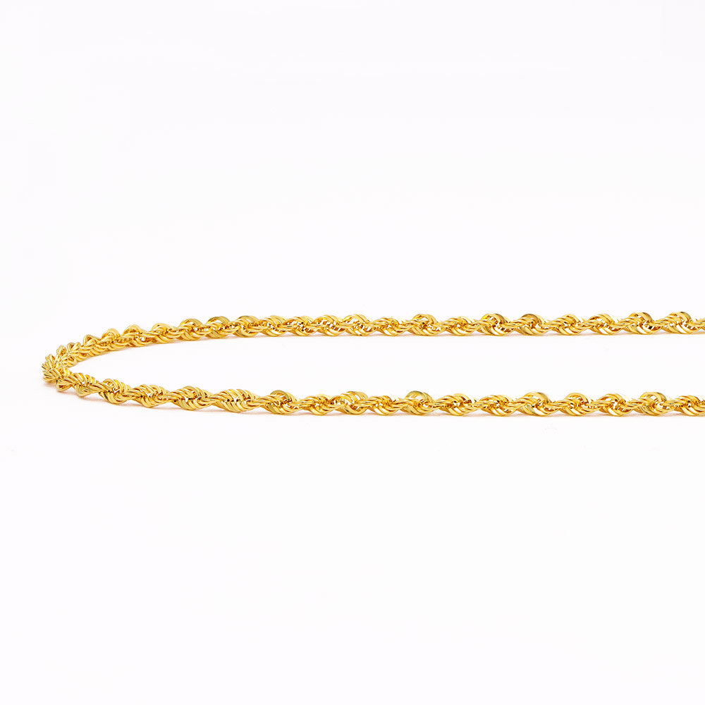 イタリンアジュエリーの名作として知られるロープチェーン。金価格の高騰でしばらくご紹介の機会がなかったものの、イタリアのジュエリー技術の進化によって軽量化に成功。ボリュームはありつつリーズナブルな新シリーズが、用途に合わせて選べる幅や長さのバリエーションを揃えて登場!商品画像の説明