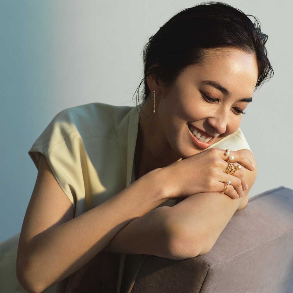 自由なレイヤードやさりげないアレンジで、日常の装いを表情豊かに彩るジュエリー。旬モードなコーディネート例もぜひ、ご参考に!ノンシャランな重ね着けがデイリー・パールの最旬流儀