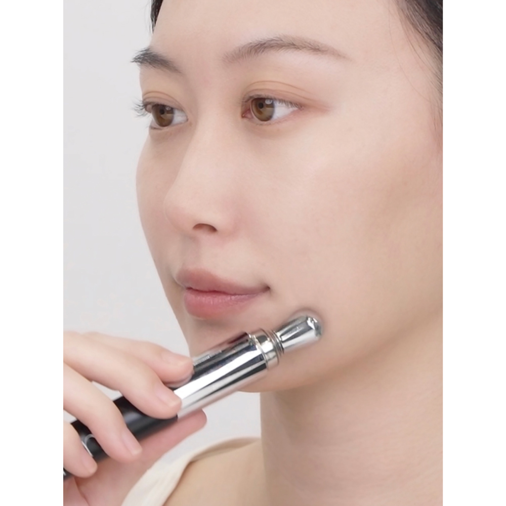 美顔器(商品番号M72509)の360°回転するダイヤモンドヘッドが肌にフィットし、毎分最大約17000回の微振動でタッピング。クリームを塗布しながらコロコロ動かせば、まるでエステでケアをされているよう。