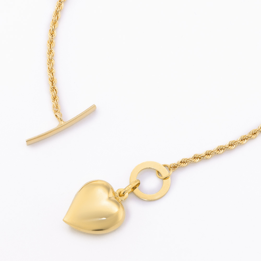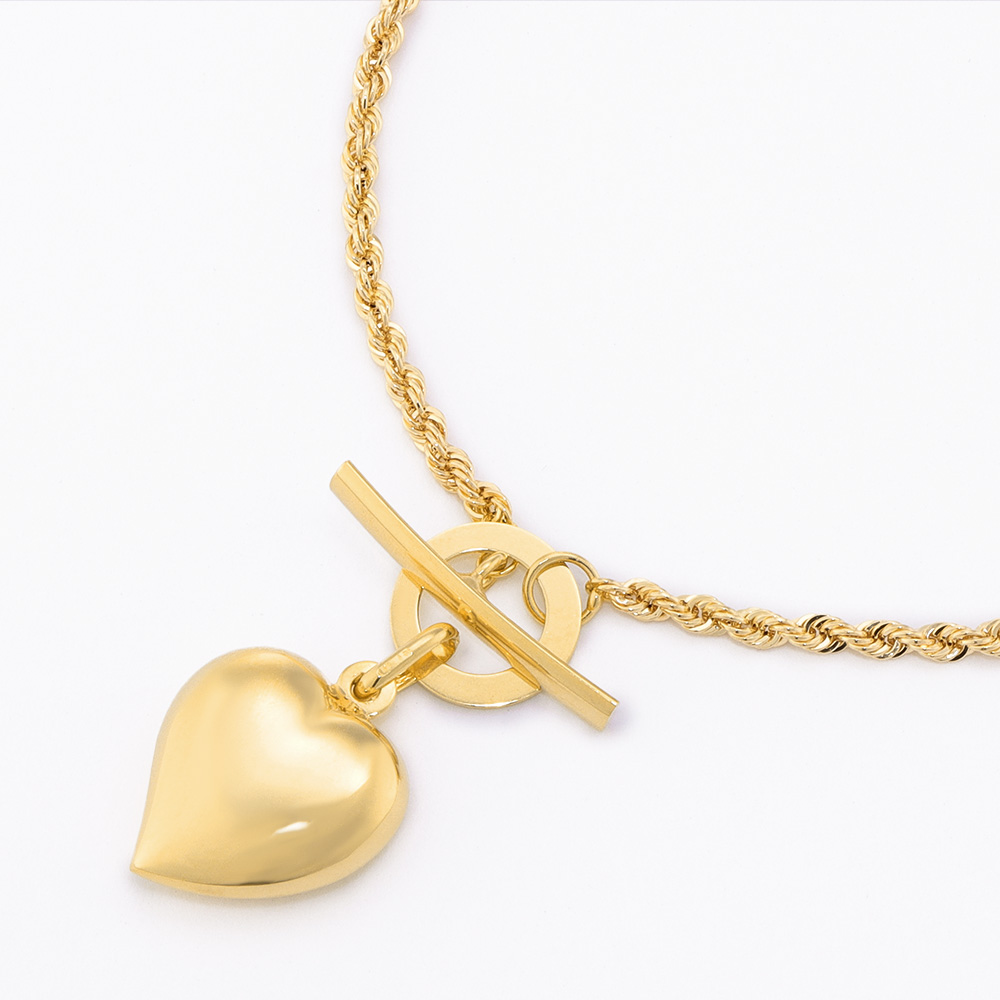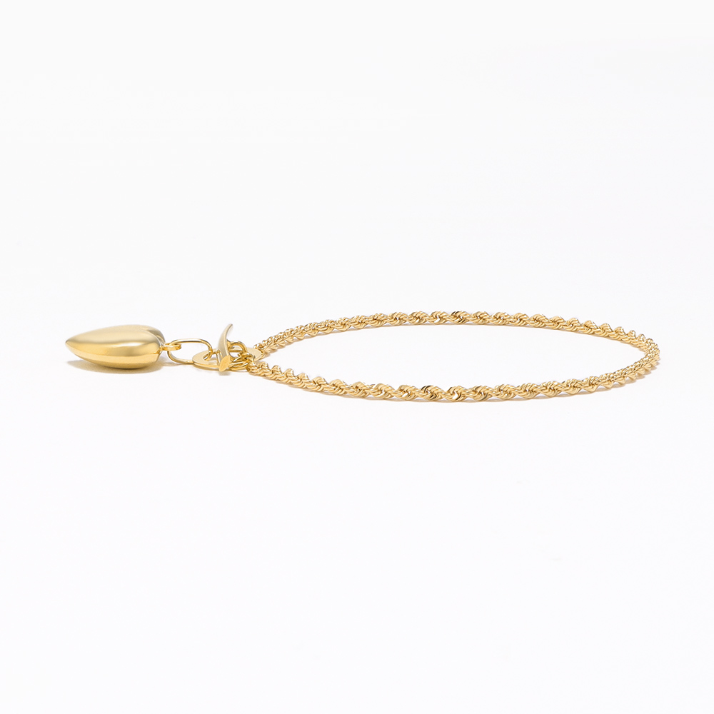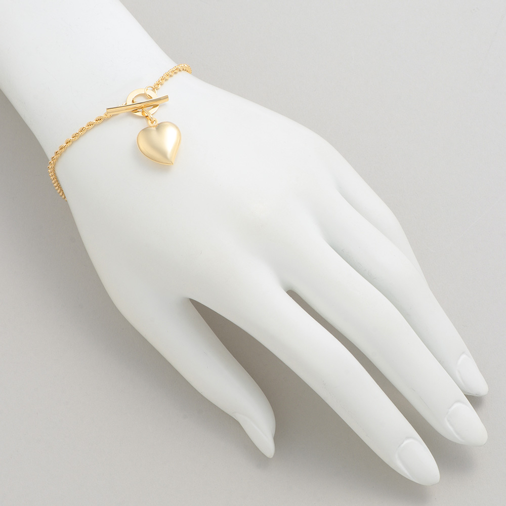 ロープチェーンにマンテルとぷっくりハートを組み合わせたウノアエレらしいブレスレット。商品画像の説明