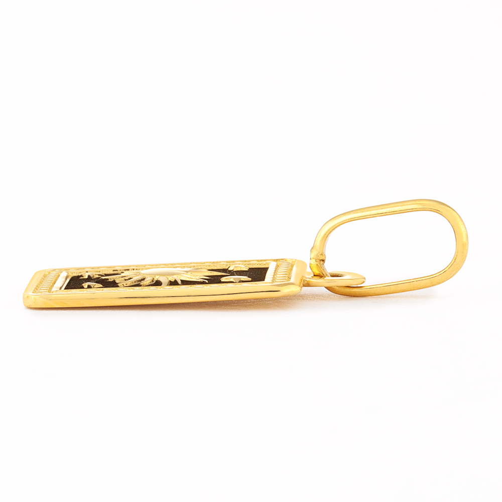 ブラウン仕上げの面にゴールドで額縁をつけたようなヘッド。幸運のお守りになる太陽と月のモチーフはギフトにもぴったり。商品画像の説明