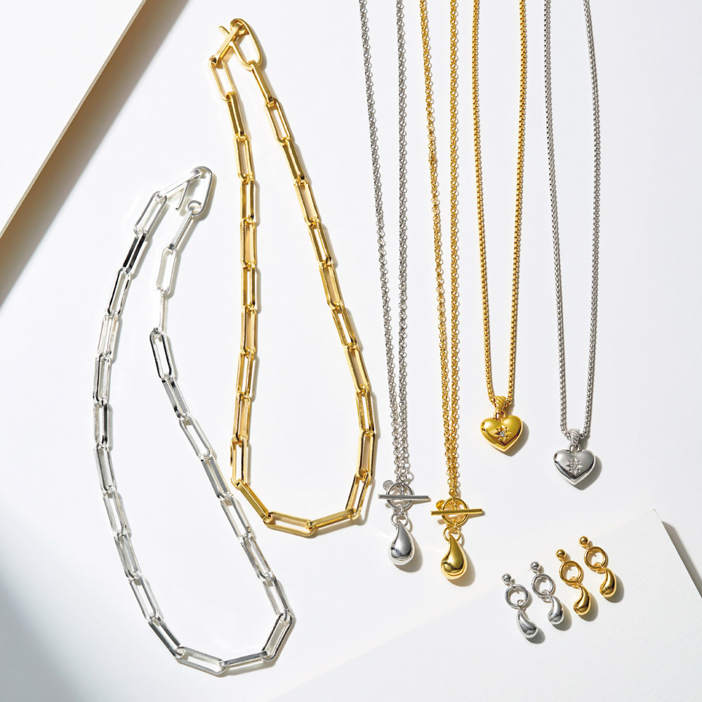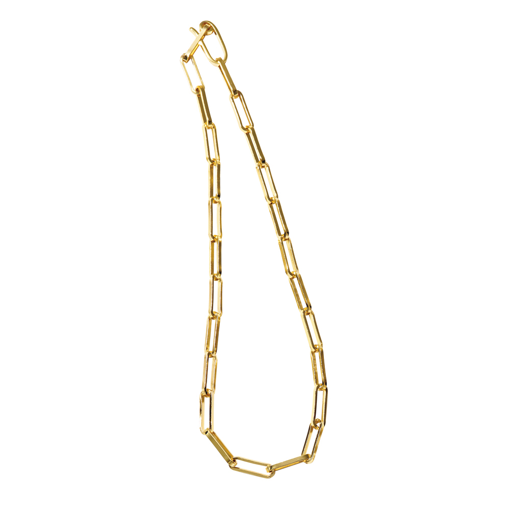 イタリア発の老舗ジュエリーブランド。縦長クリップチェーンは、メタルならではの存在感と、軽やかに身につけられる抜け感を、どちらも欲張れる絶妙バランス。