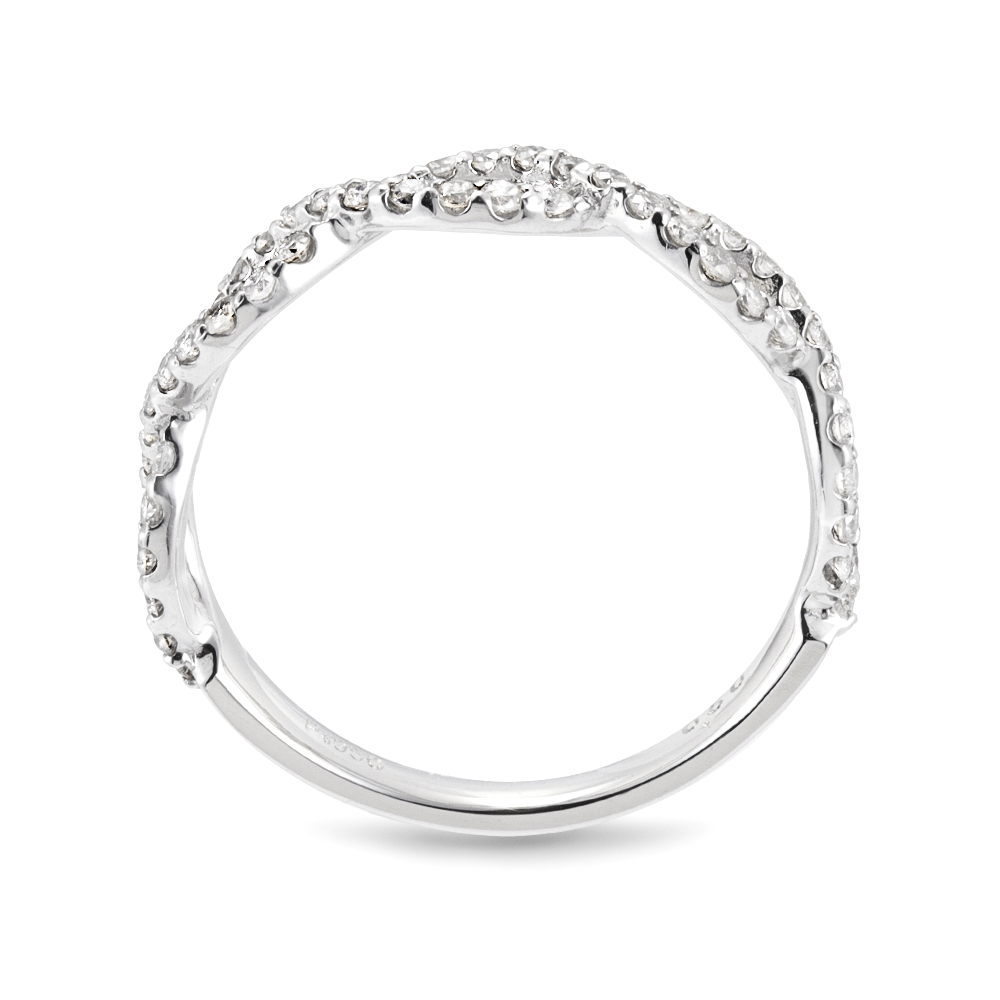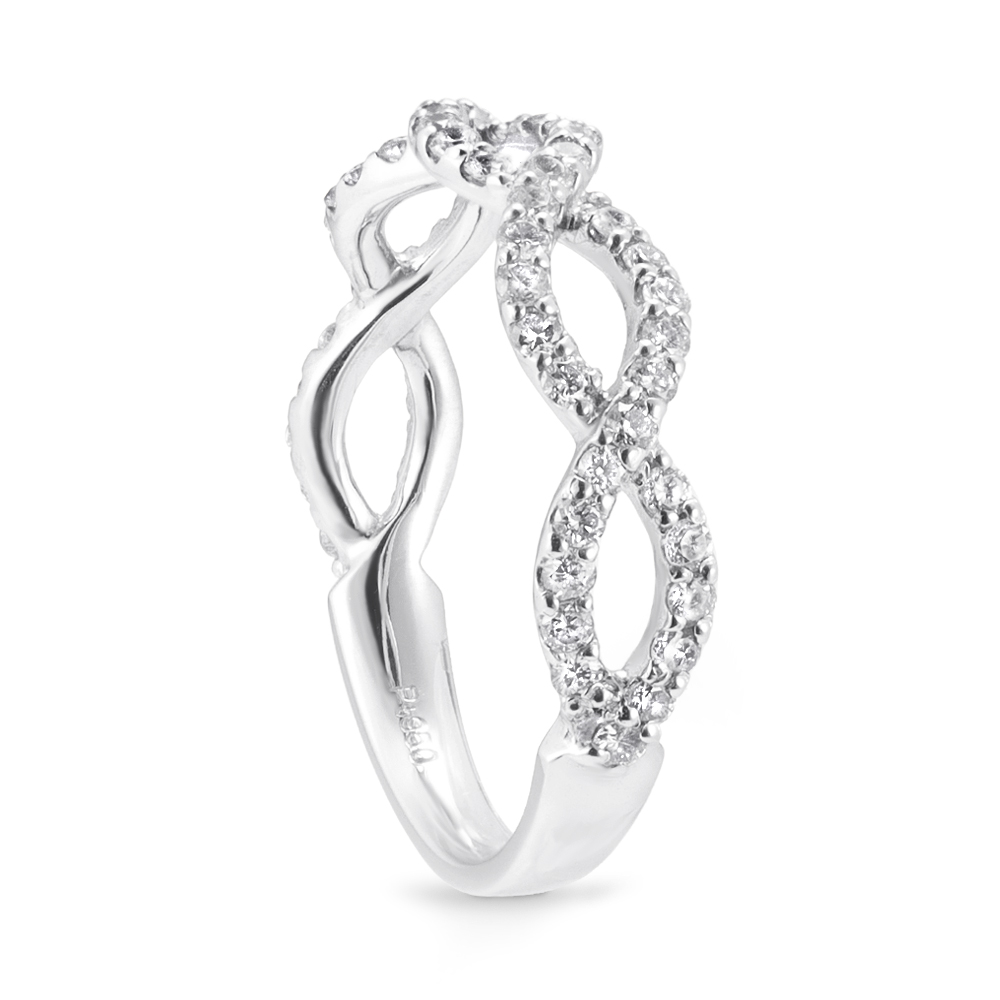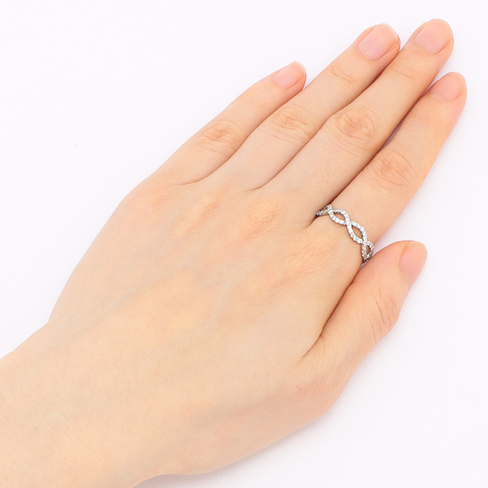 計0.5ctUPのダイヤを共有爪で配列し、ダイヤモンドの美しさを生かしたインフィニティデザインのリングです。
