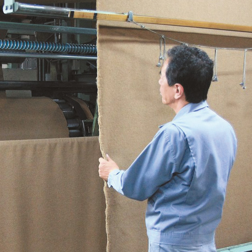 起毛師と呼ばれる熟練の職人が、一反ずつ手で風合いを確かめながらていねいに仕立てます。
