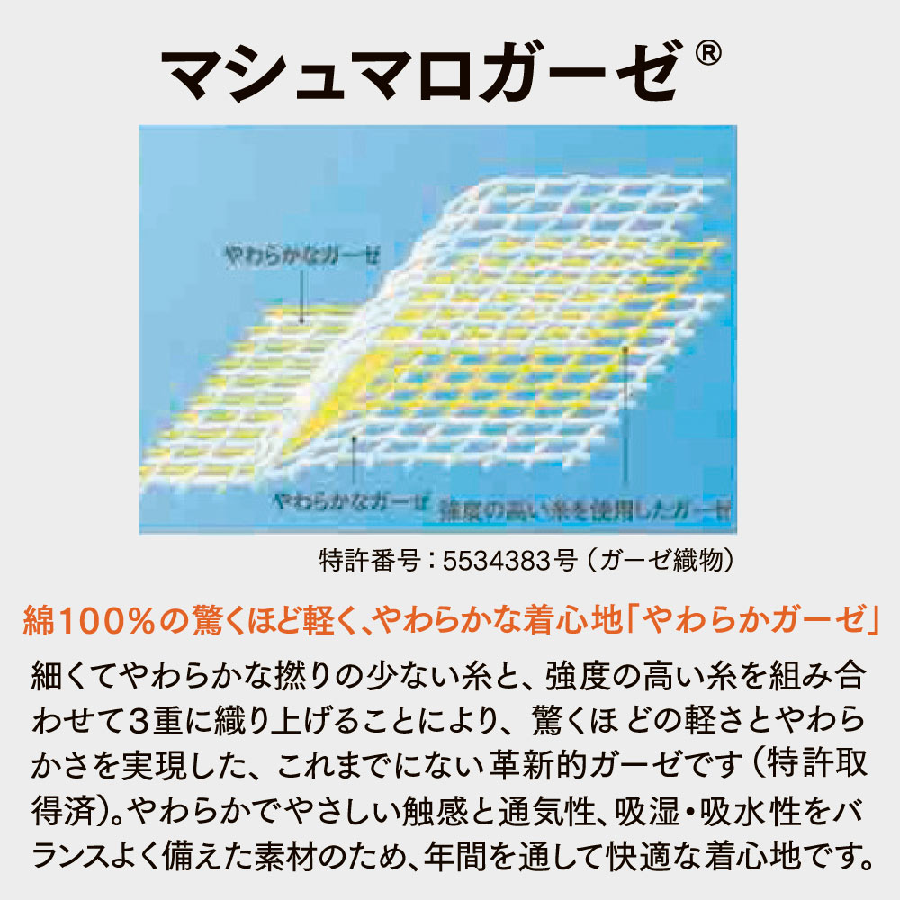 特許取得の素材「マシュマロガーゼ」(R)