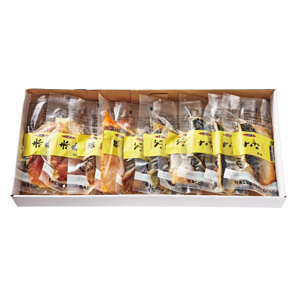 ■内容量:(ぶり西京焼、さば塩焼)各50g×3袋、(赤魚西京焼、銀鮭塩焼)各50g×2袋 計10袋
