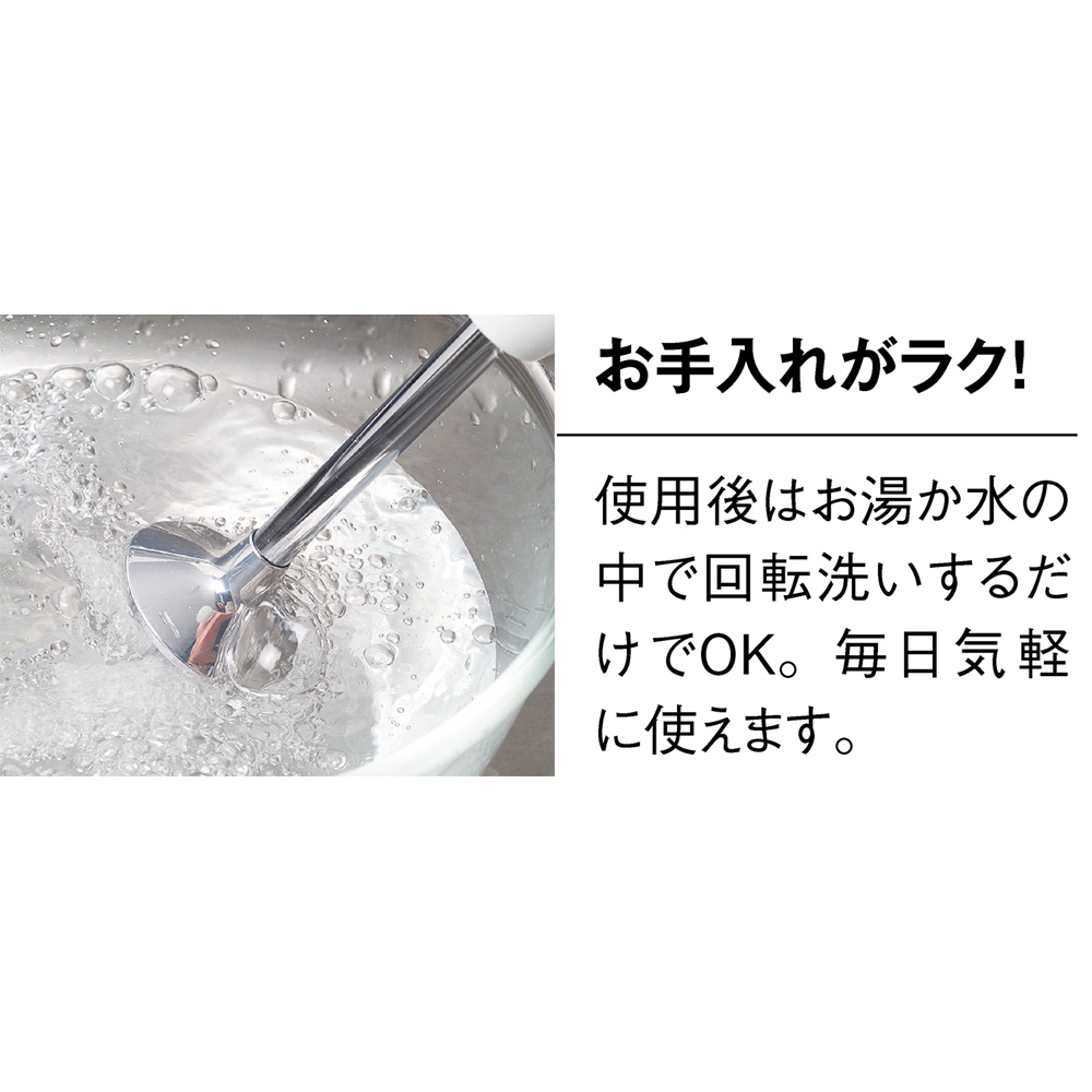 野菜を煮て、つぶして、裏ごしして、温め直す…と手間がかかるポタージュも、鍋の中で野菜をつぶせばOK!シャフトやアタッチメントが金属製だから、熱い鍋にそのまま差し込め、わずかな時間で滑らかな本格ポタージュスープが完成します。