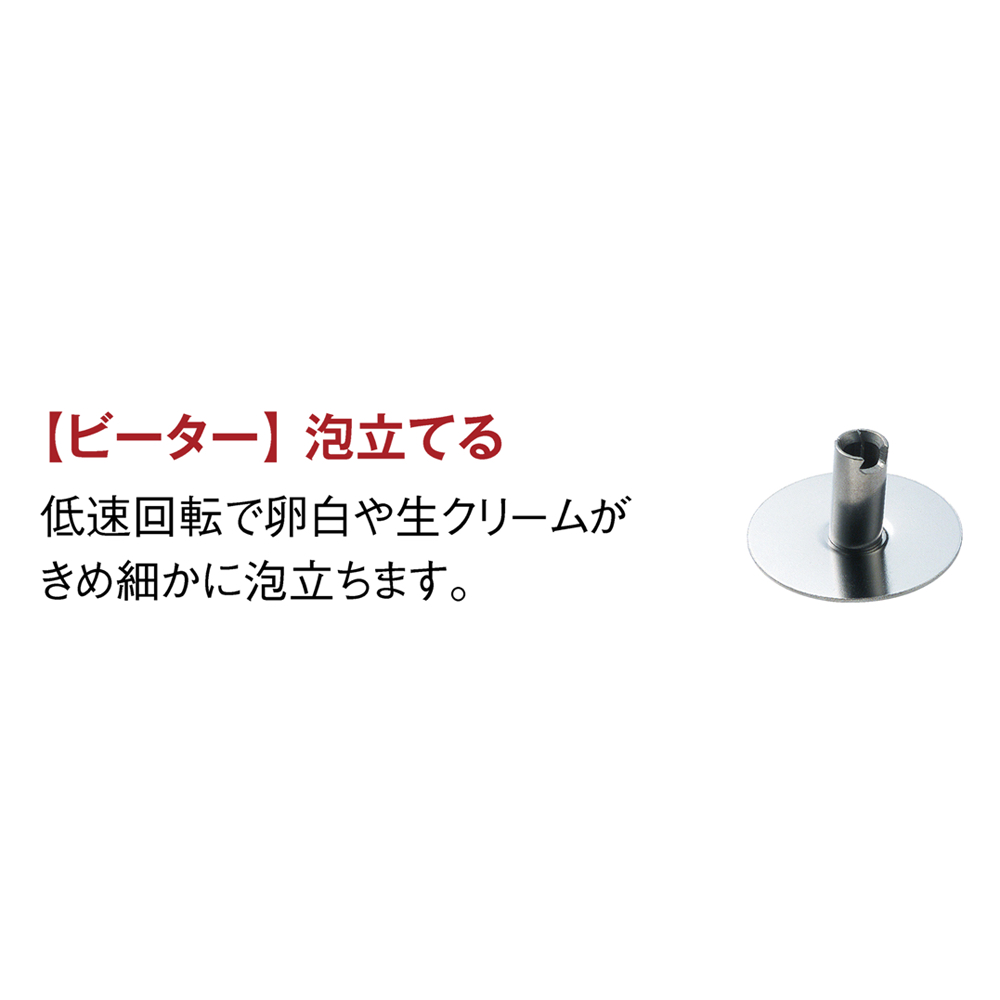 先端のアタッチメントを取り替えれば、マヨネーズ、大根おろし、ケーキの生地作り、生クリームのホイップなど多彩に活躍!別売りのグラインダーを使えば、珈琲豆を挽いたり、バジルペーストも簡単に。 割れにくい透明の樹脂素材だから、混ぜ具合も適宜確認できます。メーカー3年保証付き!アフターフォローもしっかり