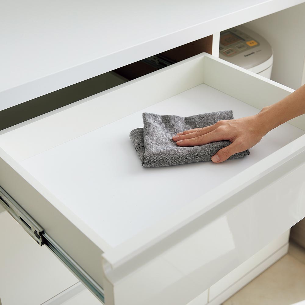 ■前面にはお手入れのしやすい素材を採用。汚れても絞ったふきんでさっと拭き取って綺麗に。