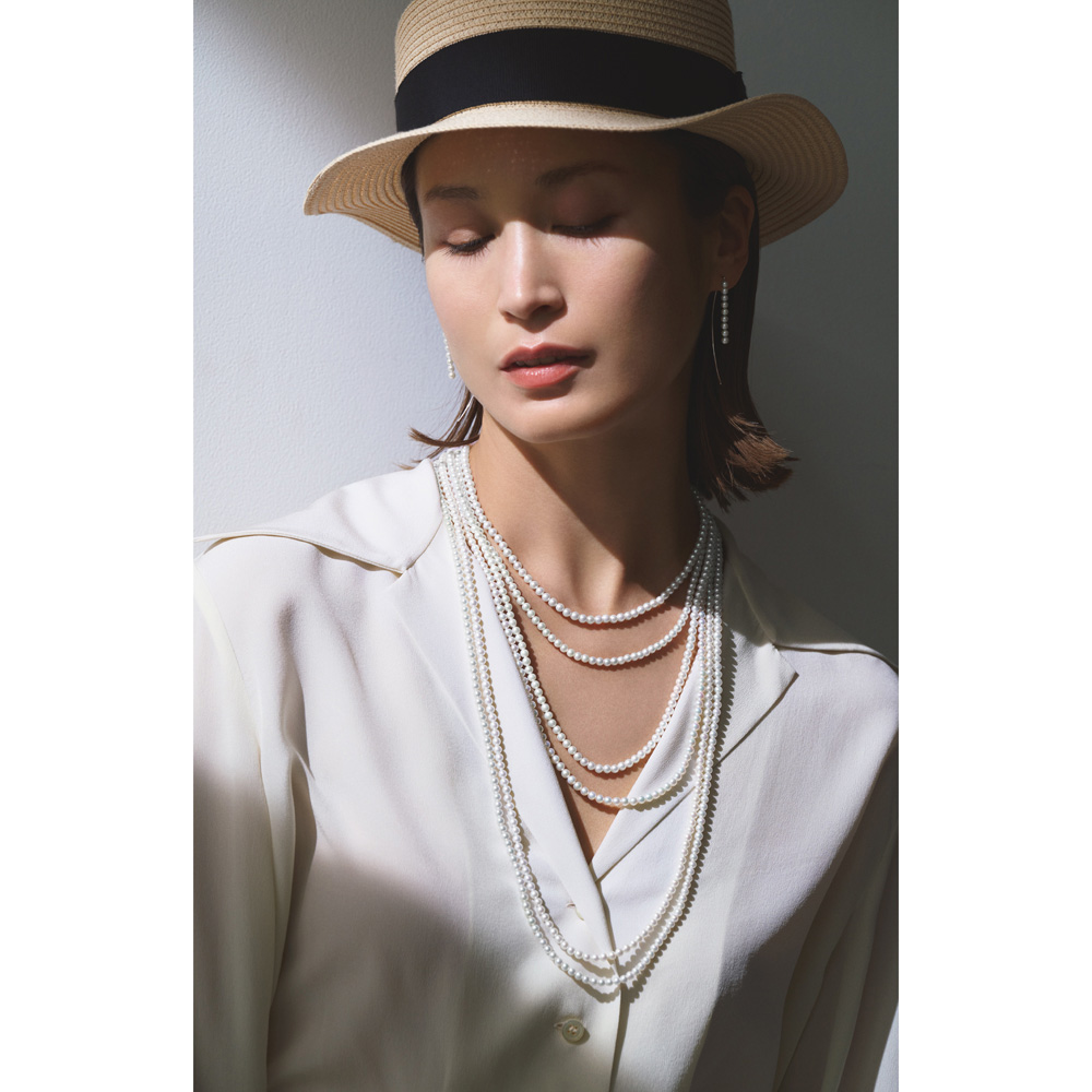 「パールの歴史が変わった」と言われるほどに、近年、注目を集めている淡水パールの高品質化。元々は無核の淡水パールが、技術改良により有核に成功したことで、真円に近く、色・テリ共にアコヤ真珠に匹敵するような美しさが実現。中でも今回は、憧れのベビーパールをリーズナブルに、たっぷりと長さ違いで揃えました。留め具はK18を使用、45cm・60cmはスライドアジャスター付きで長さ調節も可能です。